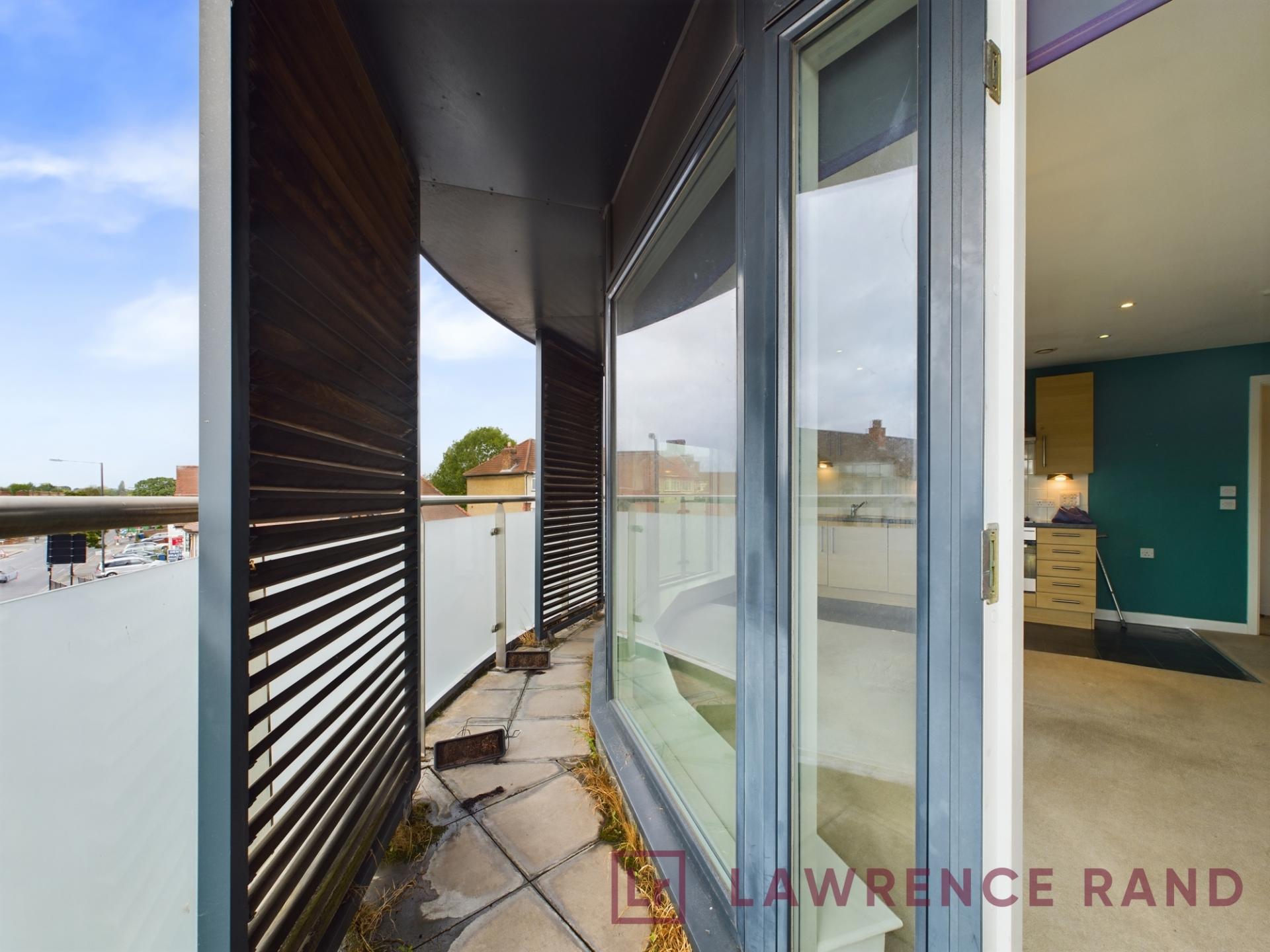 The flat features a modern bathroom, a spacious open plan kitchen/reception area, a bright bedroom with a Juliet balcony and ample storage.