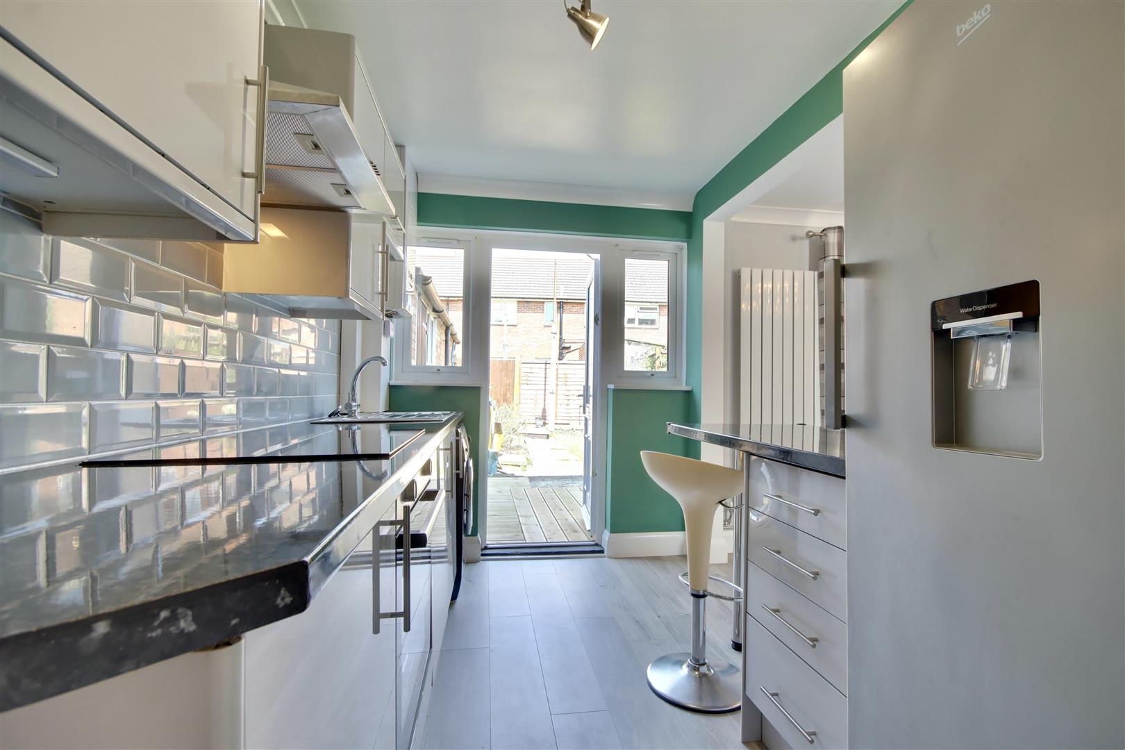 The property benefits from a brand newly fitted kitchen, fully equipped with white goods and a breakfast bar. Leading on from the kitchen you will find a spacious lounge/ diner with brand new flooring, offering a bright and airy feel. There are patio doors leading to the garden from both the reception room and kitchen allowing natural light to flood through creating a great space to relax in. The west facing garden is neatly presented with a spacious garden shed.