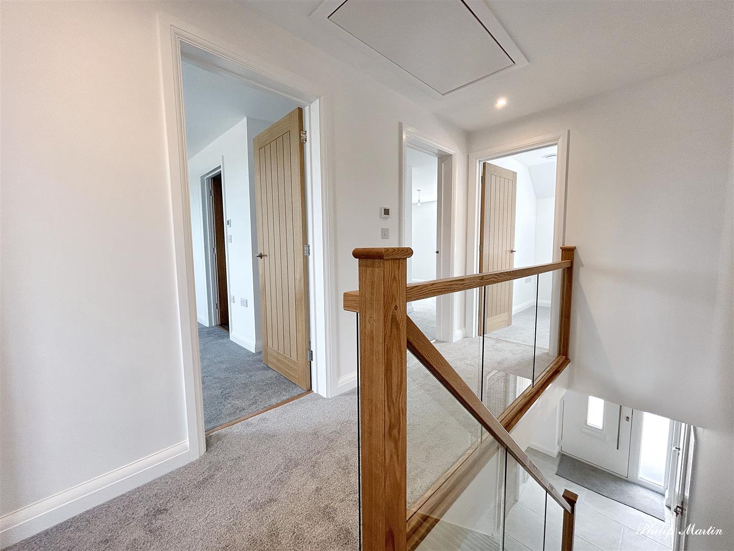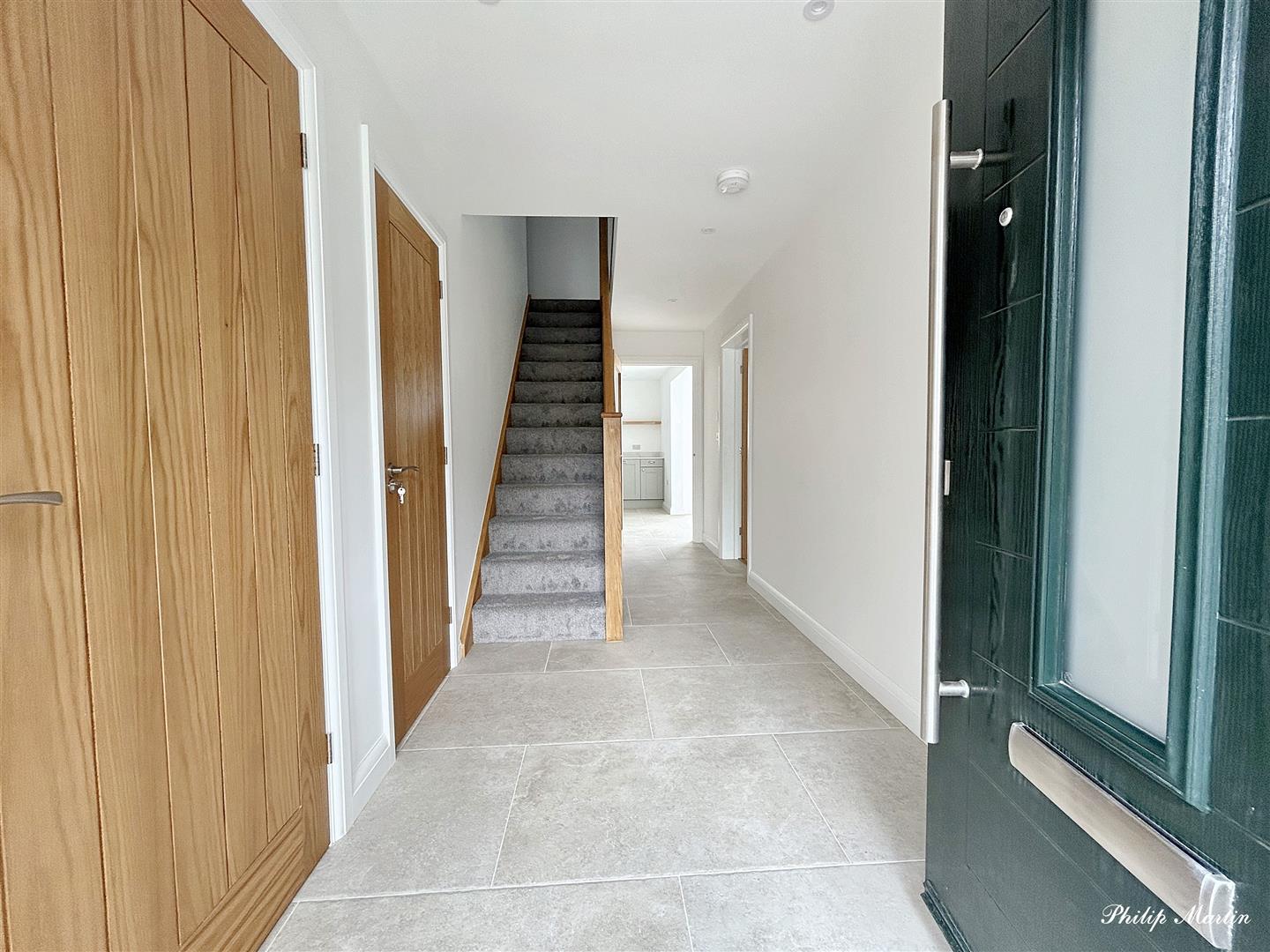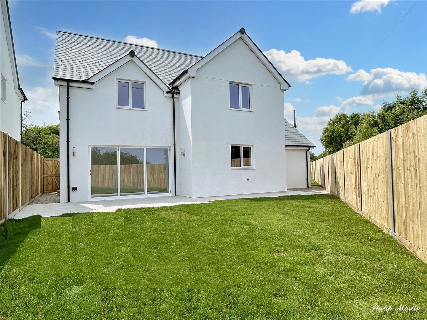 This brand-new detached house is ready for immediate occupation and built to high standards with quality features like a luxurious kitchen and bathrooms. It is one of three houses in a quiet location within walking distance of village amenities. The property is energy-efficient, featuring high insulation, air source heat pump heating, and mechanical ventilation with heat recovery (MVHR). It offers spacious, light-filled rooms, privacy, and sunny aspects, with countryside views from the first floor. The house includes four double bedrooms (two with en suite shower rooms), a family bathroom, a large sitting room, a kitchen/dining room with quartz worktops and Neff appliances, a utility room, a cloakroom, and an integral garage. The ground floor has tiled floors with underfloor heating, except for the carpeted lounge, and bi-fold doors open to a large terrace in the rear garden. Outside, there are enclosed gardens, level lawns, and parking for three cars. Pets Considered.