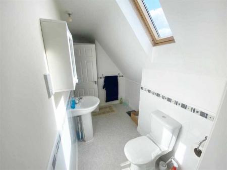 'Jack And Jill' Shower Room - Double glazed roof window, low level WC, pedestal hand wash basin with mixer tap, fitted shower cubicle with mains power shower, wall mounted mixer controls and shower hose and head, part tiled walls, vinyl flooring, extractor fan,