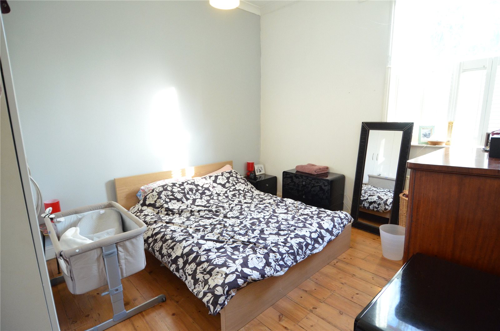 High ceilings, wood flooring and an abundance of character and style. This property is a good size throughout and nicely decorated. Both of the bedrooms are doubles, with a third room leading to the garden, which could be used as an office or dressing room.