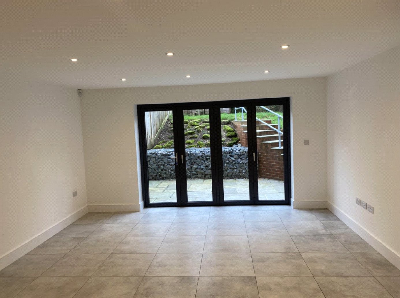 The kitchen area is fitted with a fabulous range of high gloss units and a marble style work tops with upstands. Integrated appliances include as electric double oven, five ring gas hob with canopy above, dishwasher, fridge and freezer, there are also bi-fold doors leading from the main living space to the patio and rear garden.