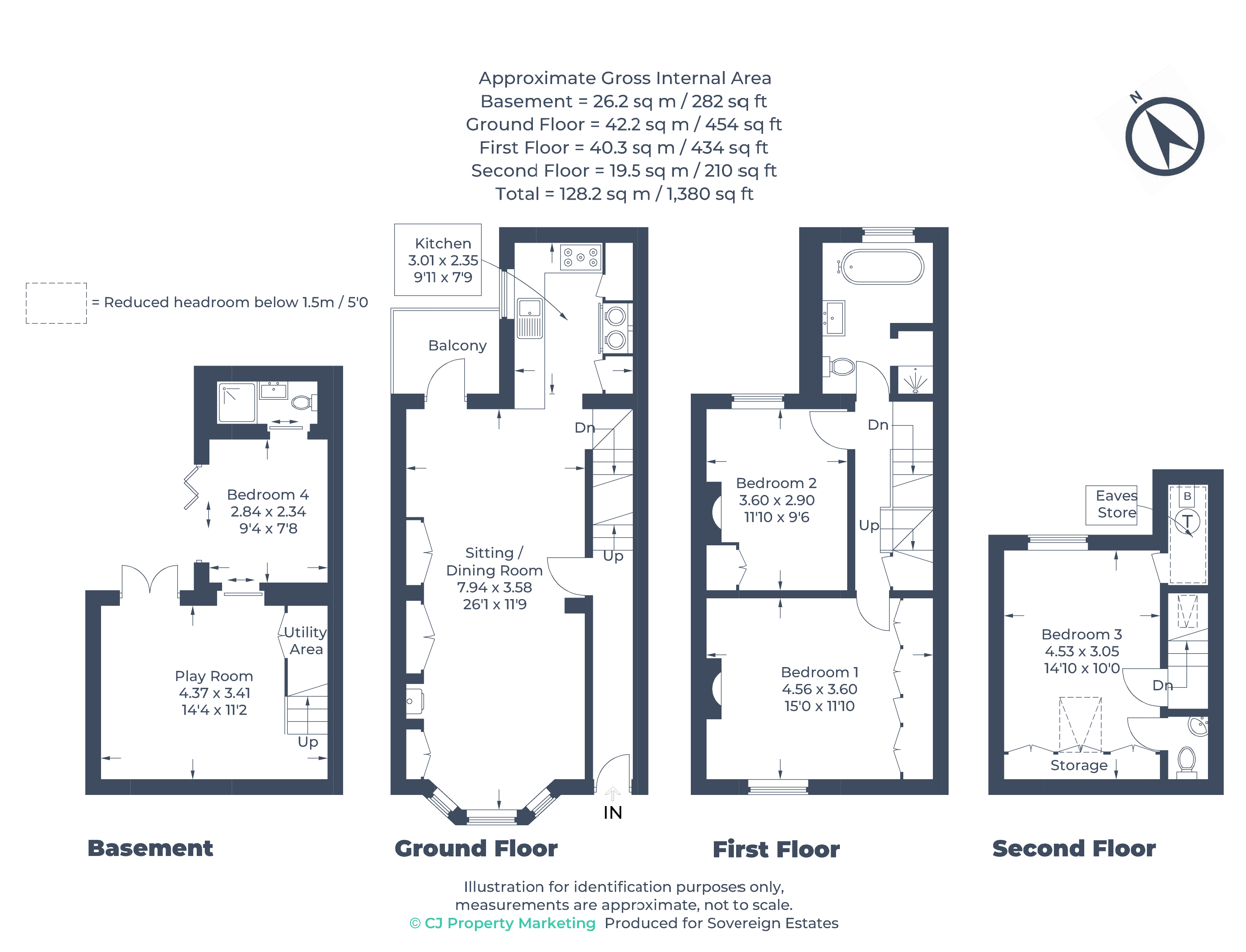 The top floor provides a further bedroom, a separate WC, and useful eaves storage.