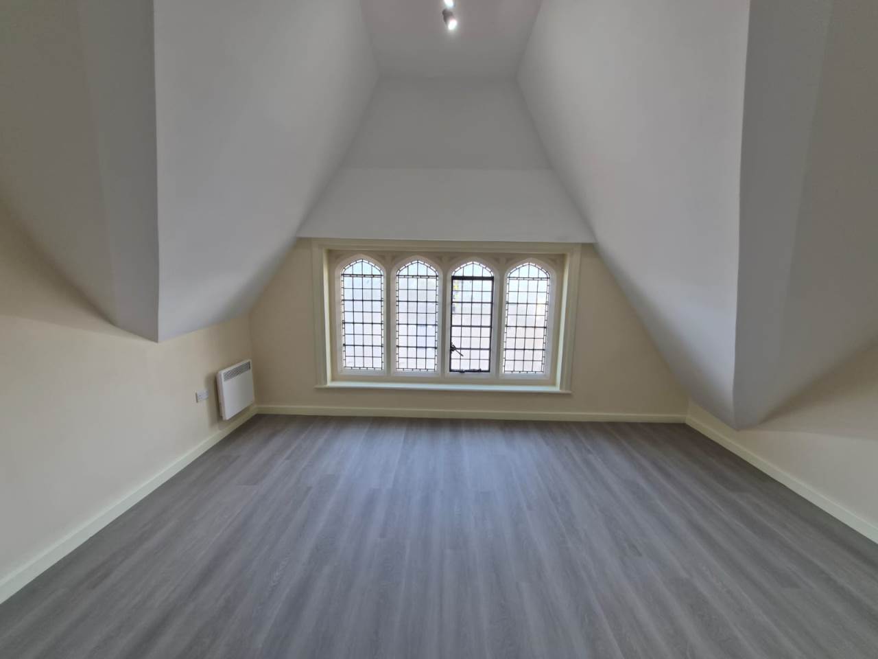 Abode are delighted to offer to market this newly renovated top floor apartment. Finished to a high standard throughout, this stunning flat comprises of an imposing open plan living space, with vaulted ceilings and period lead windows. A newly fitted shaker style kitchen include fridge, basin, and electric oven and Velux window. The shower room is finished to a similar high standard and includes washing machine with Velux window. The building itself is an imposing Tudor period building, centrally located in Royston and benefits from lift access to the apartment and secure entry system. The rent includes fibre to the building Wifi. There is no parking available with the premises. Viewing of this attractive apartment is highly recommended and by prior appointment only.