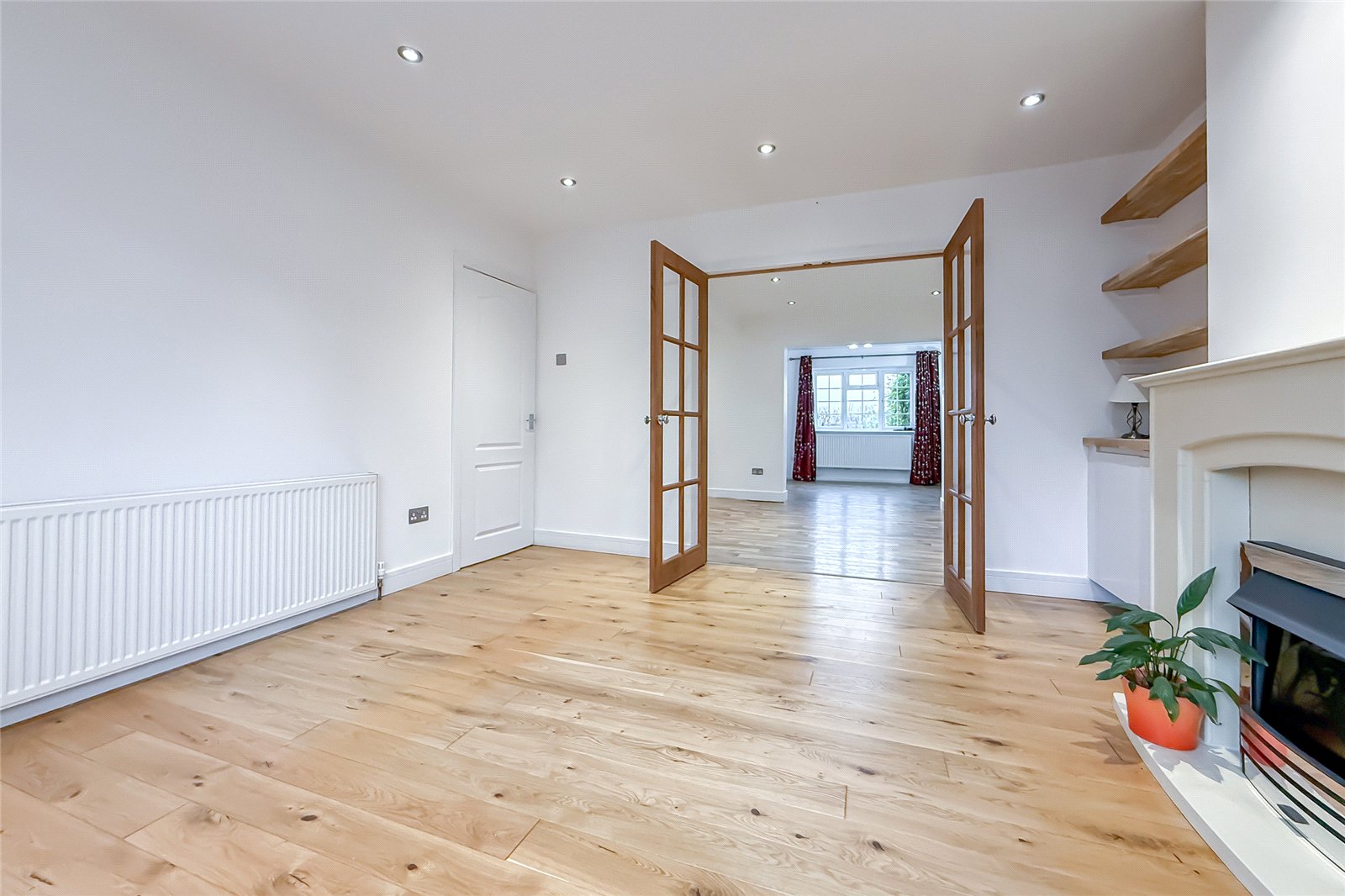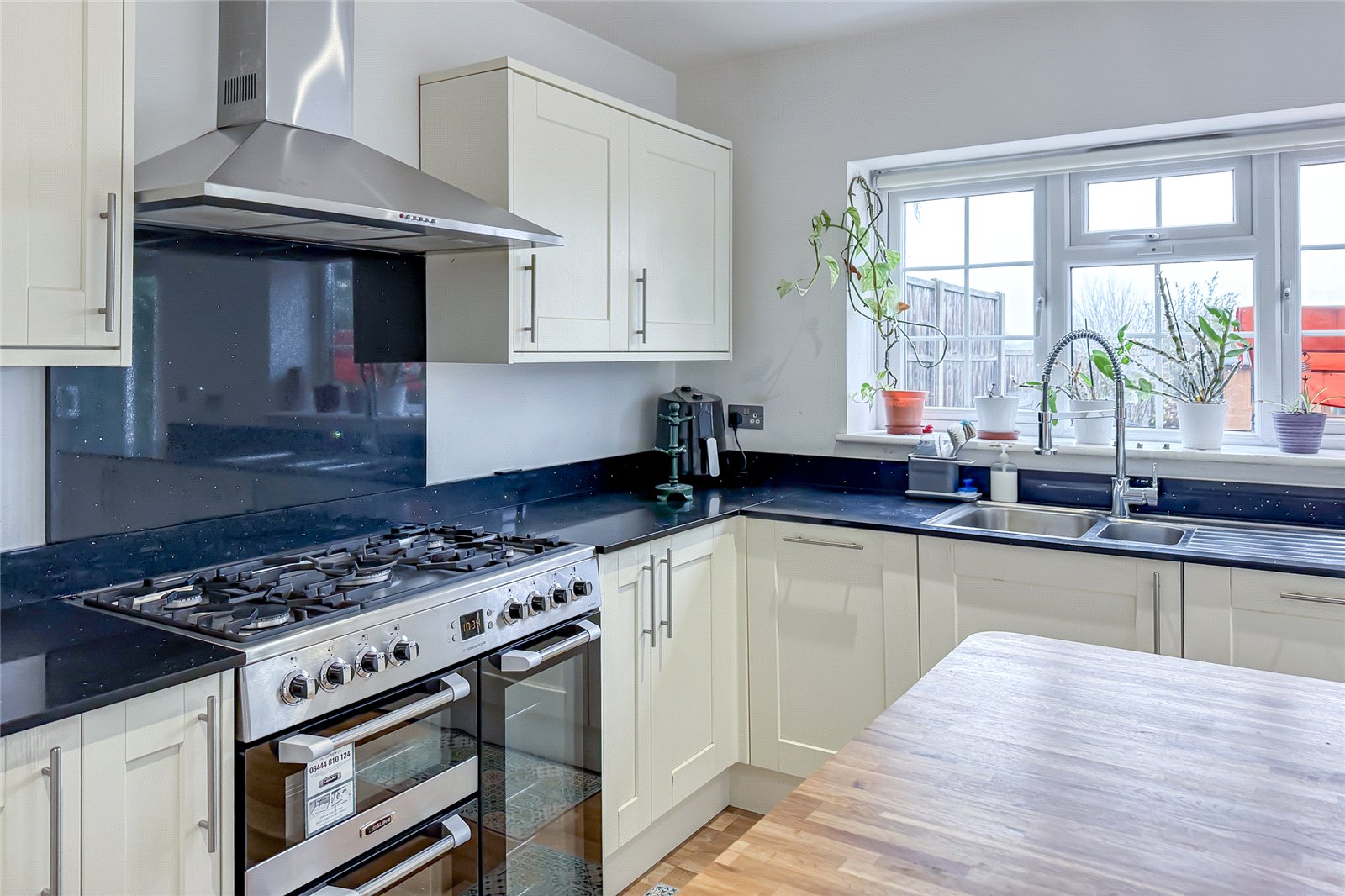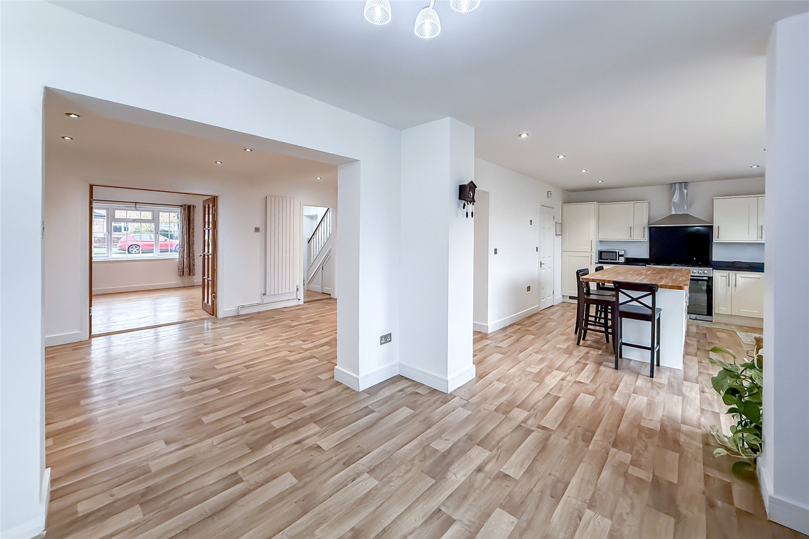 Outside, a spacious driveway offers parking for several cars, while the large rear gardenwith its charming garden roominvites summer entertaining, play, or a serene spot to work from home. A gate from the back garden opens up into Wheatfields sports field, then beyond that, more open greens spaces of Sandringham Crescent enjoying sunset views.