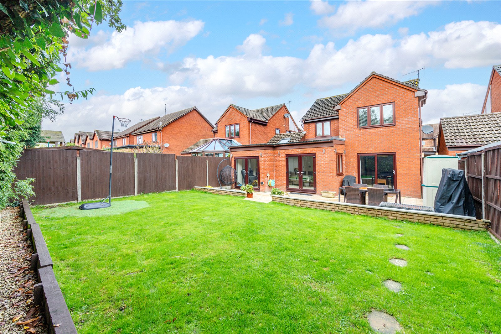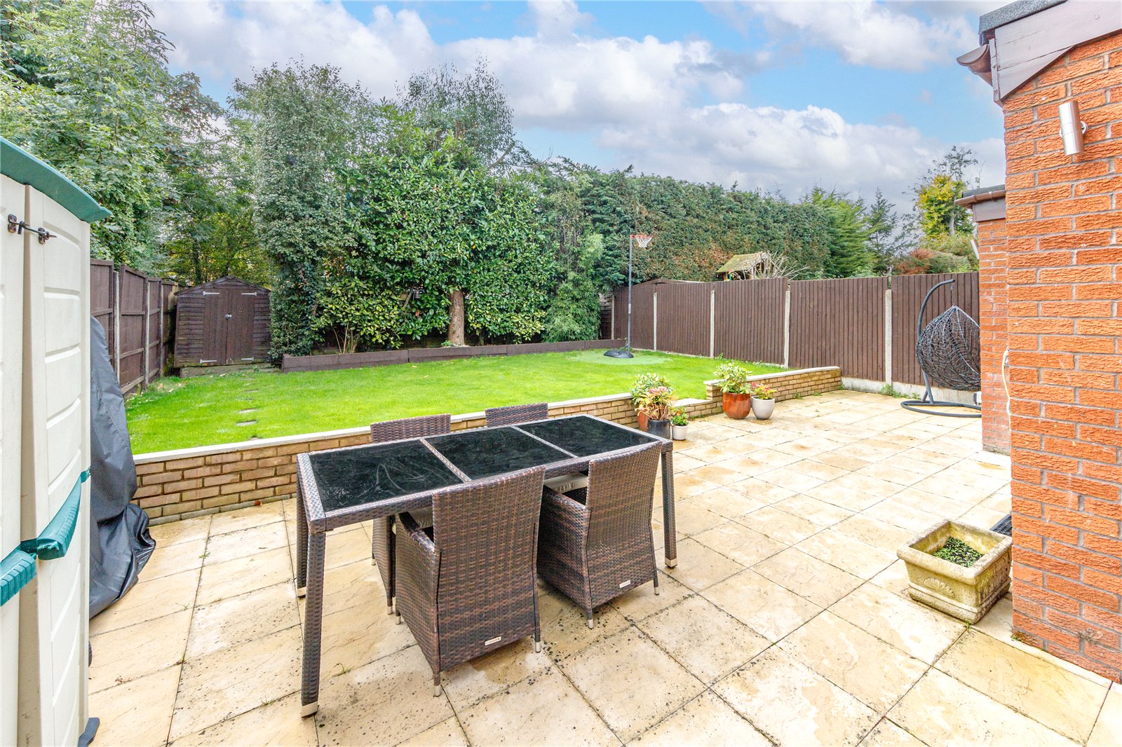 The family dining area offers access to the stunning south facing rear garden with paved patio area and, surrounded with tall trees offering a great amount of privacy. There is a side access that can be used to access the rear garden from the front of the property.