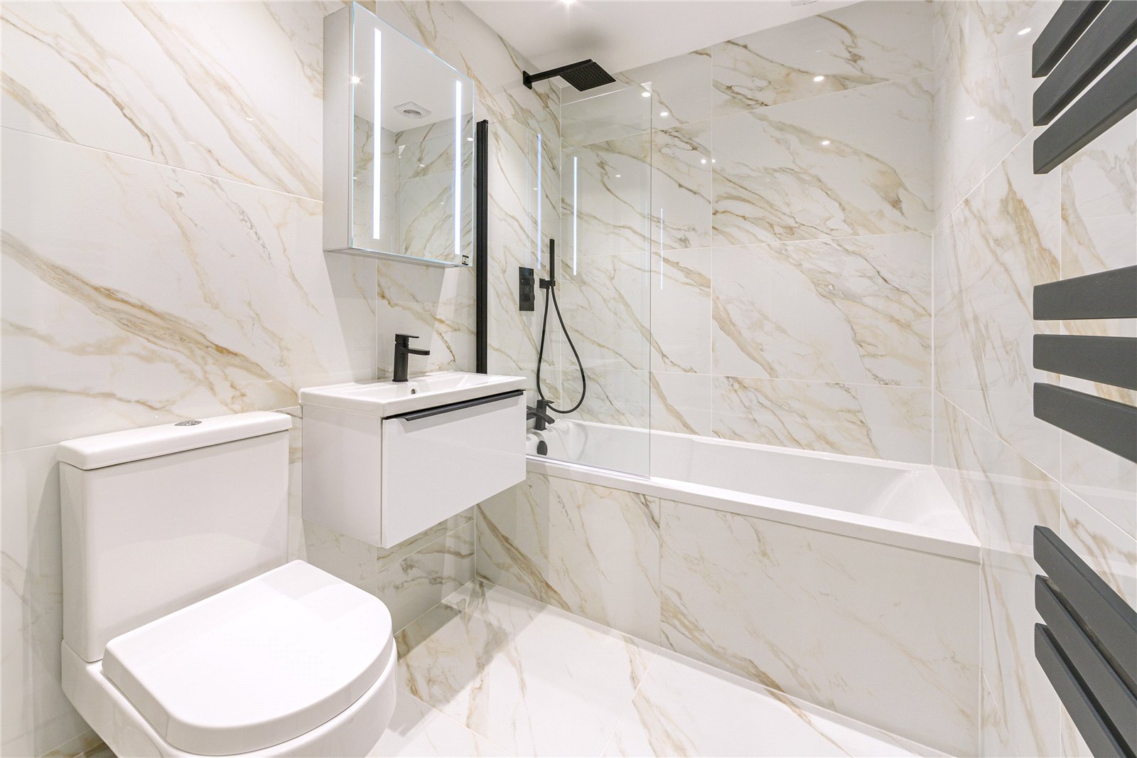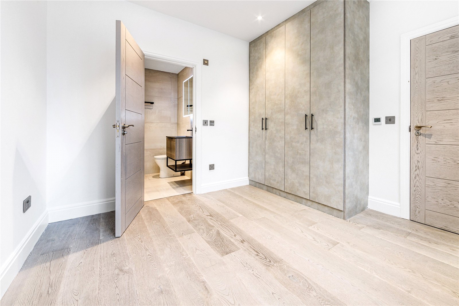 To the first floor, this consists of the generously sized master bedroom, a walk-in wardrobe fully equipped with built-in storage and a luxurious master en suite complimented by Italian tiling, a free-standing bath, walk in shower and a double vanity sink, underfloor heating also equipped. The second bedroom is also fitted with walk in wardrobes. The family bathroom is located to this floor, is also fitted with Italian tiling throughout with a panelled bath, vanity wash hand basin and underfloor heating.