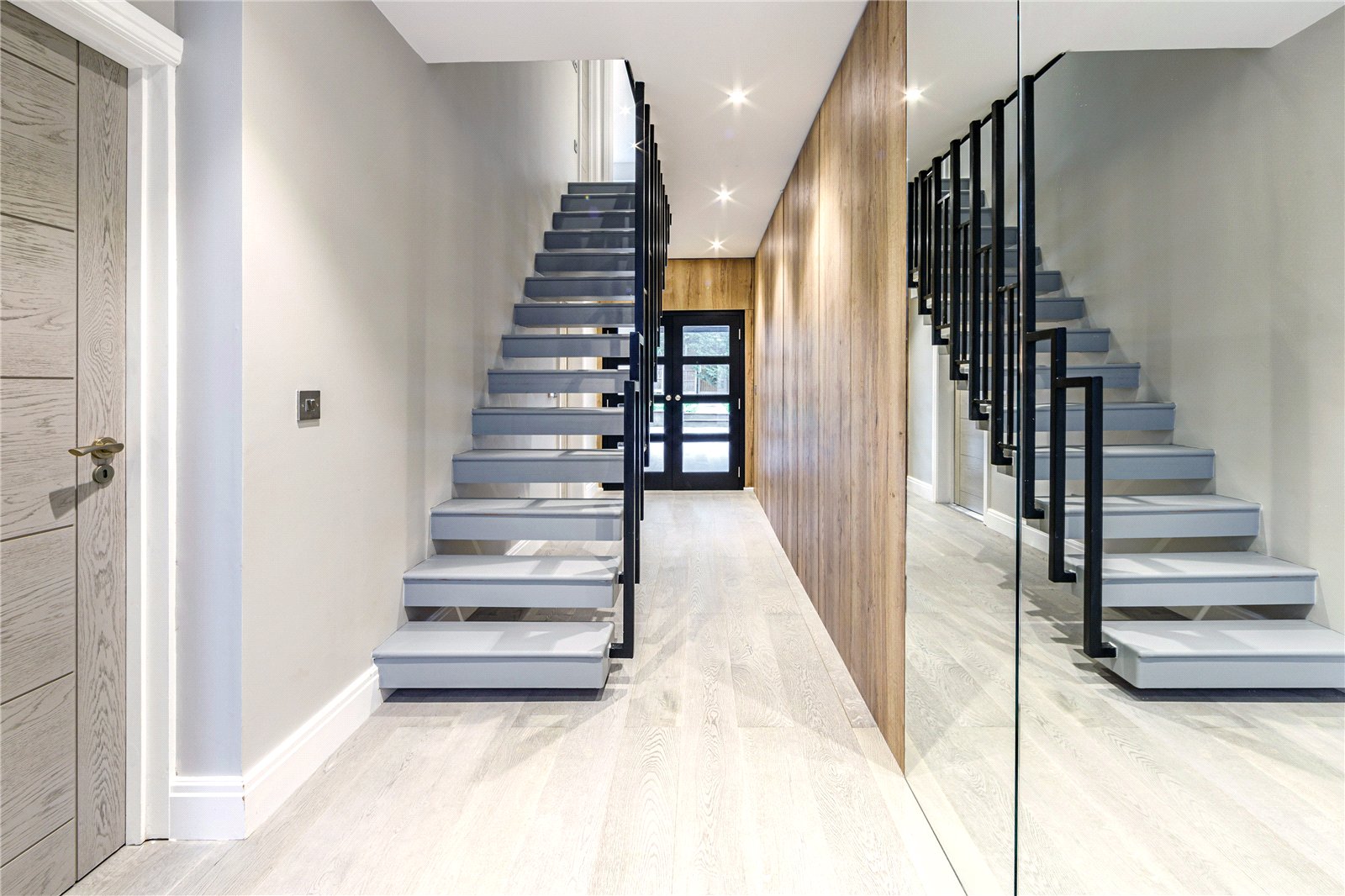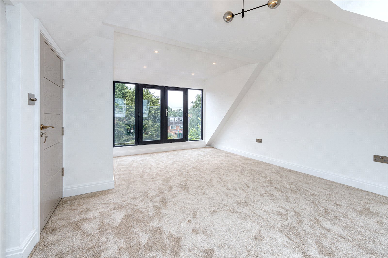 The second floor consists of a large bedroom with fitted wardrobes and a Juliet balcony overlooking the landscaped garden.