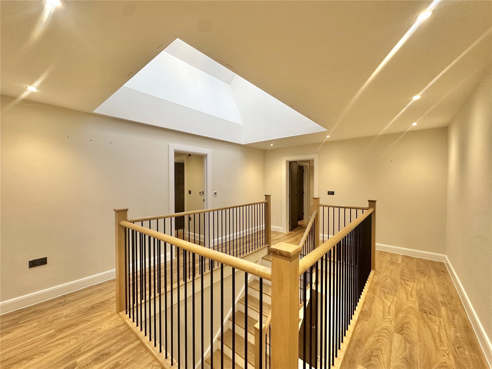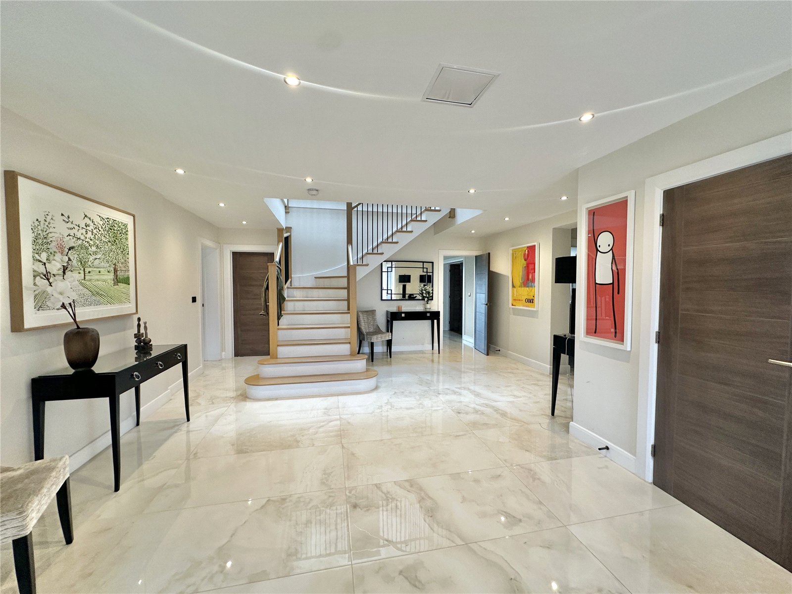 This exceptional five-bedroom residence combines elegant design with modern luxury, set within an exclusive gated countryside enclave. Crafted to the highest specification, the home offers five generously proportioned bedroomseach with its own en-suiteand a beautifully styled, contemporary interior throughout.The ground floor welcomes you with an impressive entrance hall and bespoke staircase, leading to a bright, spacious lounge and an elegant dining room ideal for entertaining. The modern, fully fitted kitchen features a dedicated dining area and adjoining utility room, while a private study and convenient ground-floor WC complete the layout.Upstairs, the stunning principal suite showcases a large bedroom, luxurious en-suite bathroom, and a walk-in wardrobe. The four additional bedrooms are equally impressive, each benefiting from their own en-suite facilities and refined finishes.Outside, the property enjoys ample parking, a double garage with an office above, and far-reaching countryside viewsall within a secure gated setting. A substantial, easily accessible loft provides excellent additional storage.