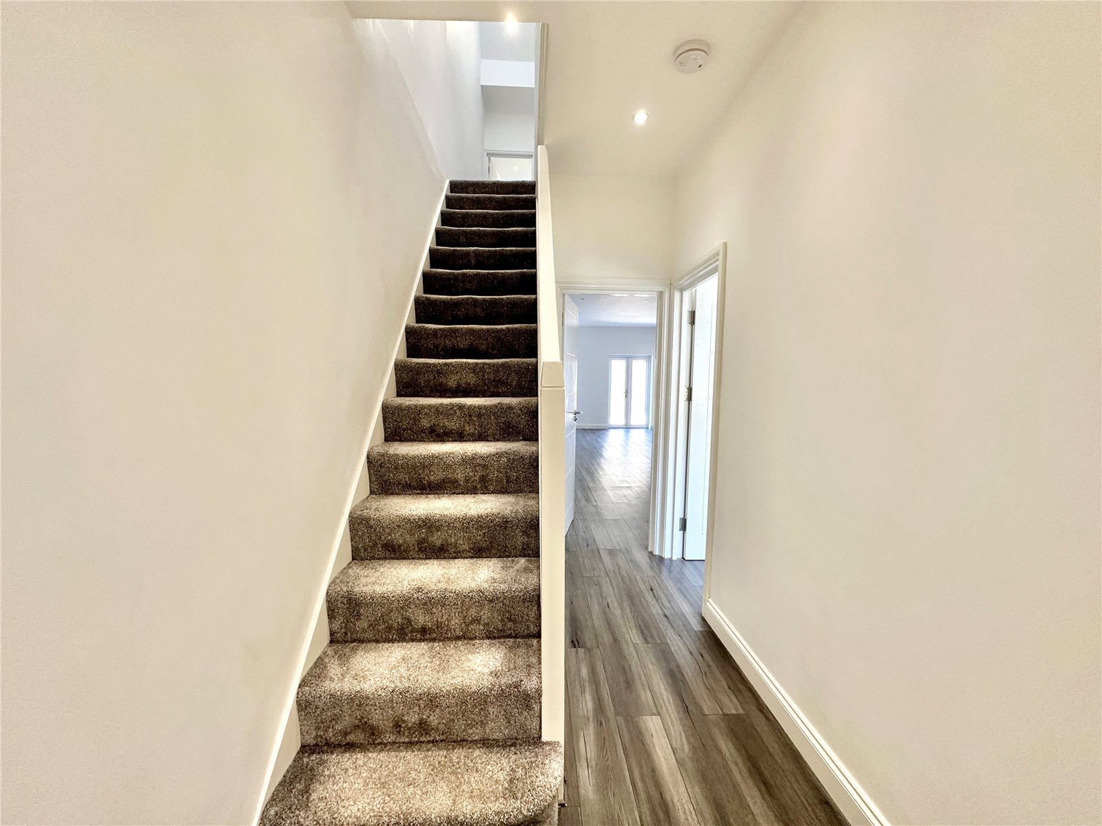 Briefley comprising; proch, entrance hall, living room, open plan living / dining / kitchen room with two sets of French doors opening out to the rear garden and a downstairs WC.