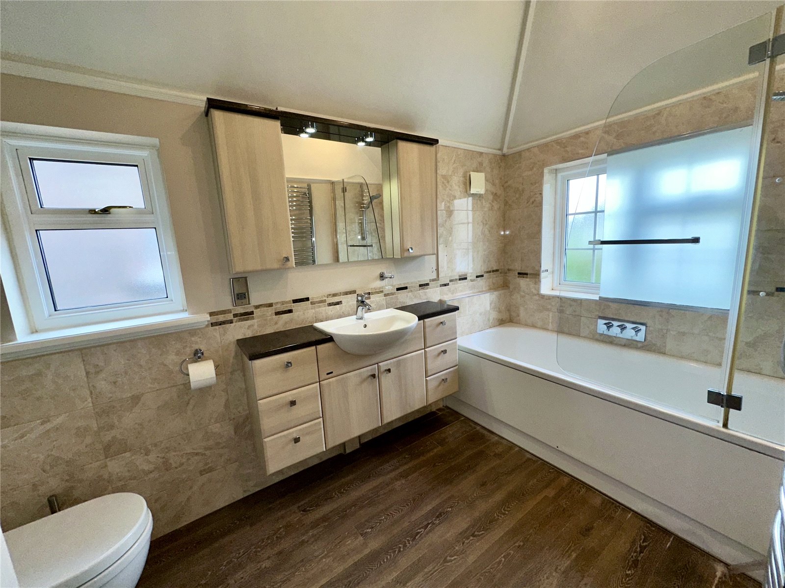 Upstairs, the first floor provides three well-proportioned bedrooms, including a principal bedroom of over 15 ft in width. A modern family bathroom completes the upper level.