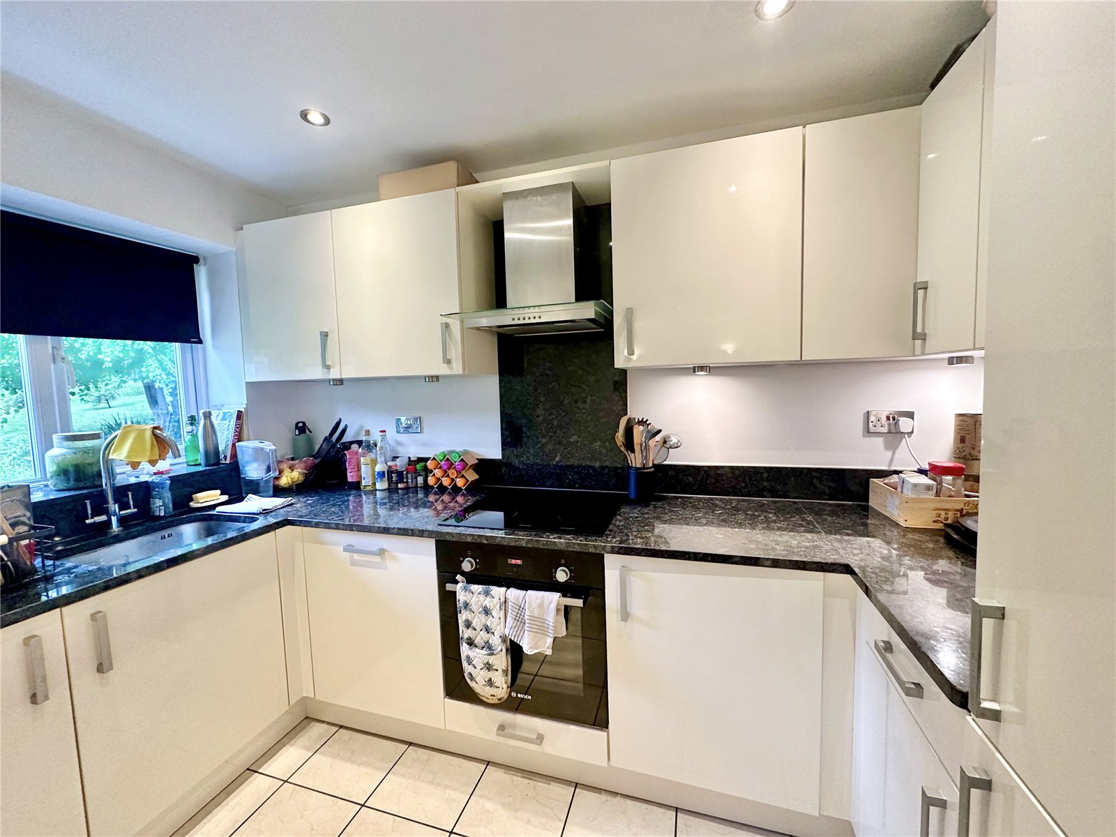 The property enjoys delightful views over well-maintained communal gardens and features a modern fitted kitchen with granite work surfaces, an integrated oven and hob with extractor, washing machine, dishwasher and fridge freezer.