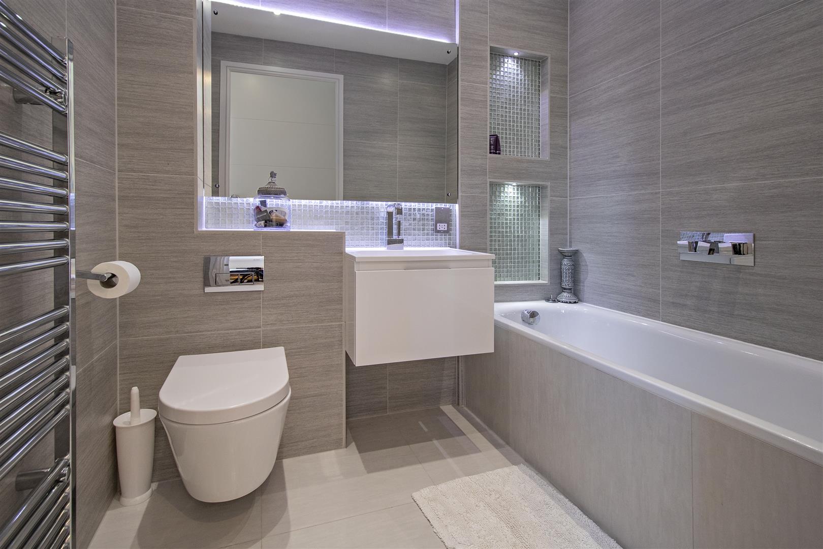 To the second floor there are two further double bedrooms, both with en suite bathrooms. To the rear is a good sized garden with patio, mature shrubs. The front of the house is approached via a large driveway benefiting from ample off street parking for cars. The property is set behind gates.