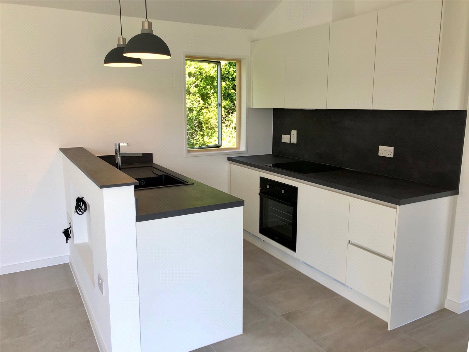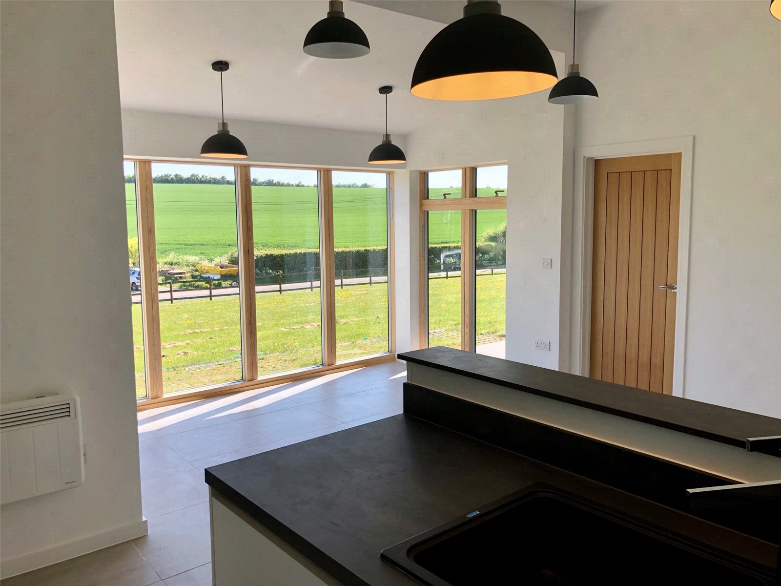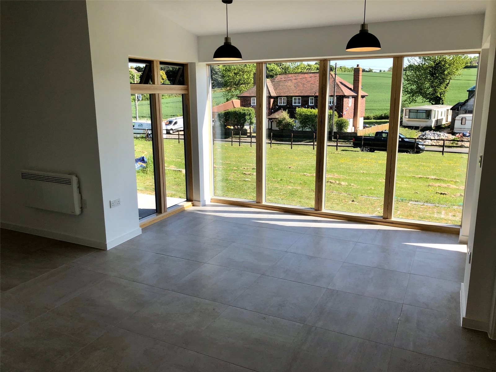 Door to front with square window. Double glazed Velvac full height window to side. Tiled flooring. Electrical cupboard.