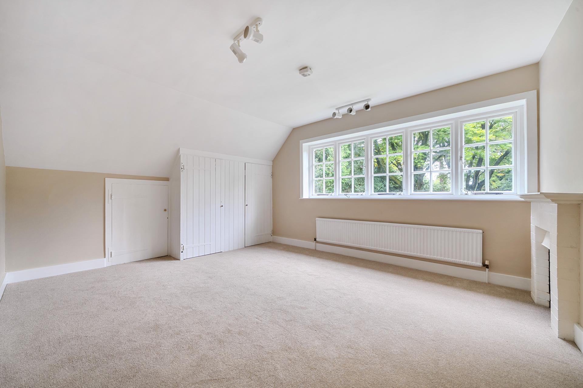 Upstairs, six generously proportioned bedrooms are arranged across the first floor. Three feature built-in wardrobes, while the principal bedroom stands out with its dual-aspect views over the driveway and gardens, alongside a stylish en suite bathroom. The remaining bedrooms are served by a family bathroom with both bath and separate shower.