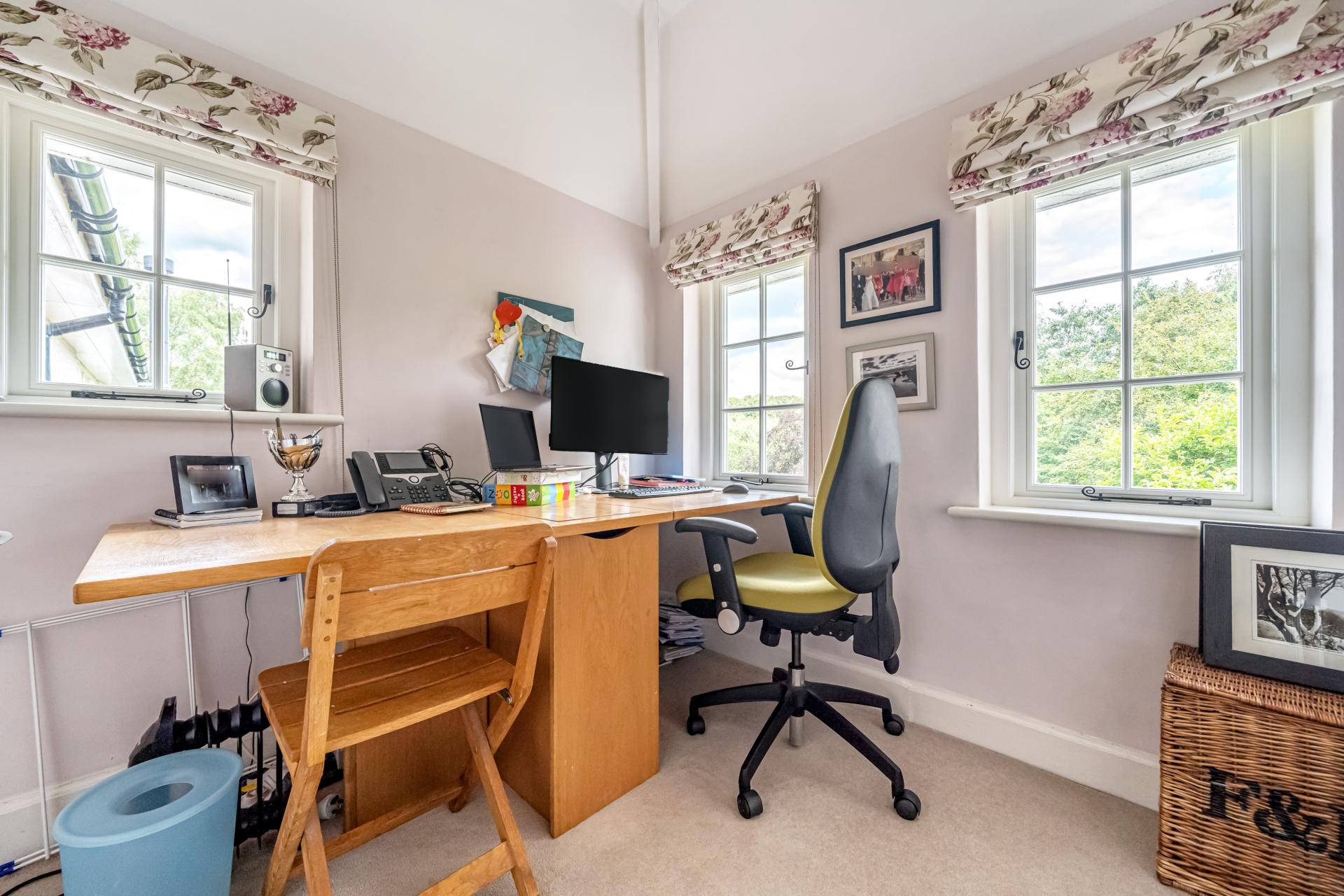 Exuding Victorian charisma, the home is adorned with period features while embracing modern interior elements. Conveniently located, it stands a mere 1.6 miles from Haslemere Station and enjoys proximity to a fine selection of independent and state schools. Nearby amenities include the Weyhill shops and the M&S Foodhall. The property's edges blend seamlessly with the majesty of the Hindhead Common, Polecat Woods, and the enchanting Devils Punchbowl.