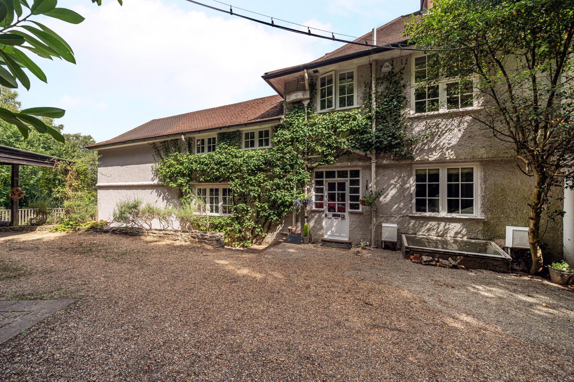 Outside, a gravelled driveway leads to open car port for two vehicles, with additional space for 2 vehicles, while the verdant grounds host a plethora of delights. Vast lawns and tiered terraces provide spaces for outdoor leisure and al fresco dining. Immerse yourself in the historic tapestry of the gardens, echoing tales from a bygone era. Originally crafted in 1899 by acclaimed architect Charles Spooner, this dwelling has played host to illustrious owners Agnes and Egerton Castle, whose book 'Our Sentimental Gardens' immortalizes the estate's enchanting past.