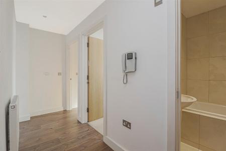 Entrance Hall - 4.09m x 1.19m (13'05 x 3'11 ) - Wooden flooring. Recessed ceiling spotlights. Storage cupboard with plumbing for washing machine. Radiator. Entryphone system.