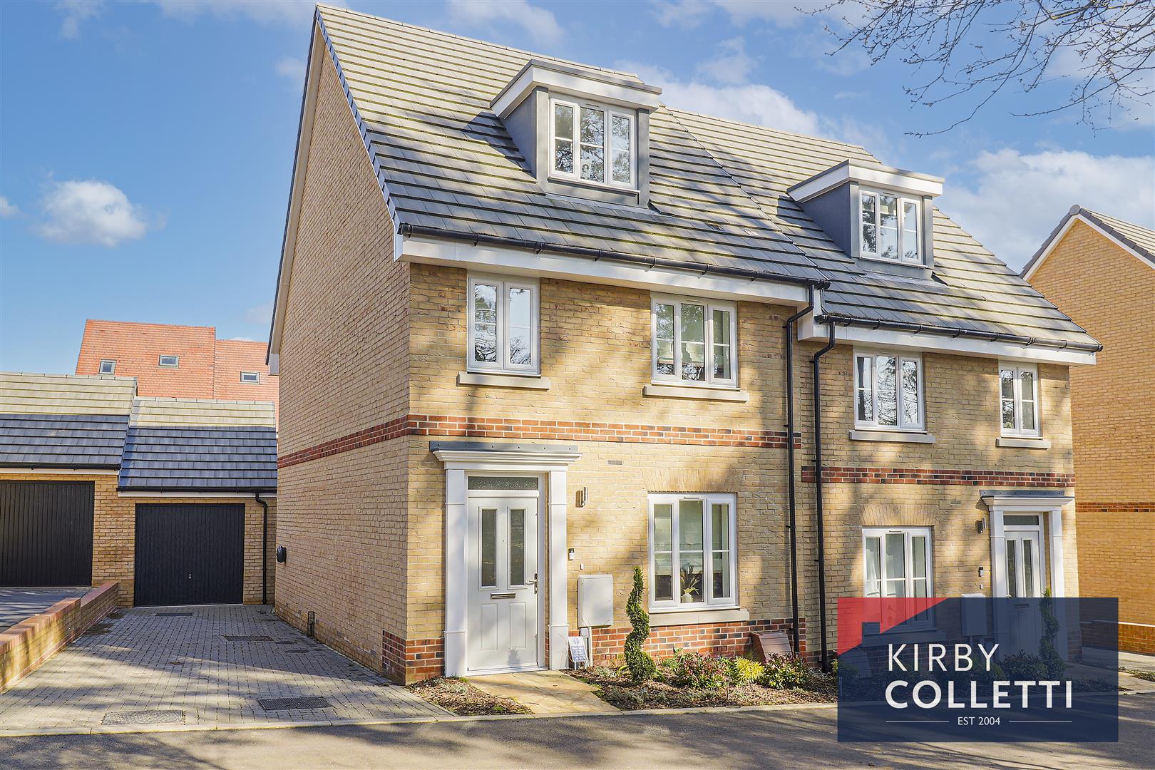 NEW INSTRUCTION. A Four Bedroom Semi detached Town House within the New development, High Leigh Village. Offering 1,243 square feet of a well designed interior, En-suite to Main Bedroom, Modern fully fitted Kitchen, Ground floor Cloakroom, Garden, Garage and Off street Parking. The surrounding area of Hoddesdon is known for its community spirit and local amenities, making it an excellent choice for families and professionals alike. With easy access to nearby parks, schools, shops and links to the A10 and M25, this location offers a balanced lifestyle that combines tranquillity with convenience. Offered Furnished/unfurnished. AVAILABLE NOW