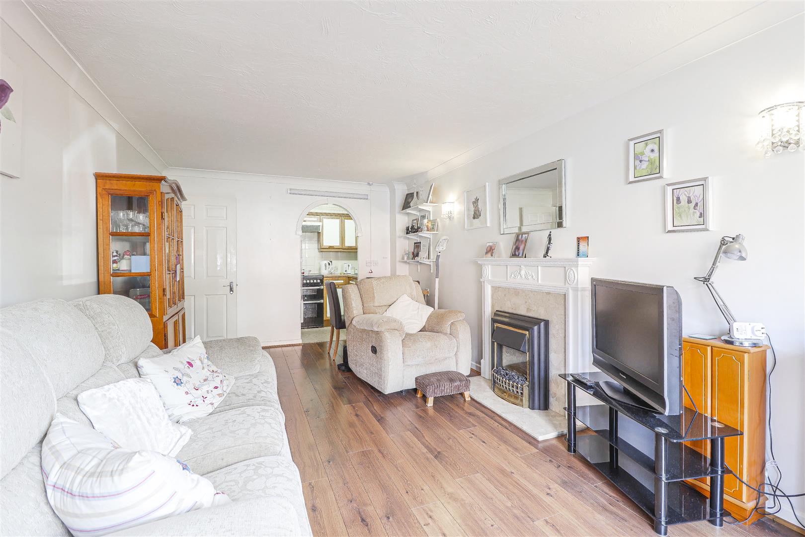 Lounge/Diner - 5.94m'' x 3.15m'' (19'6'' x 10'4'') - Rear aspect uPVC double glazed door giving access to communal garden and car park. Two rear aspect windows. Feature fireplace with inset electric fire. Wall mounted electric storage heater. Coved ceiling. Access to: