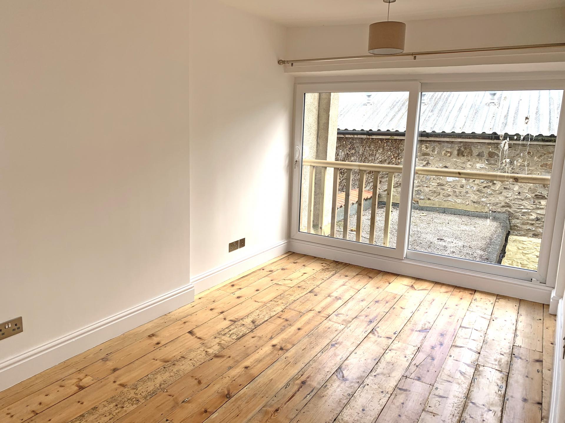 3.96 (12.11) x 2.40 (7.10) Window to front aspect, double glazed sliding door to rear with Juliette balcony. Stripped wood flooring, radiator, TV point.