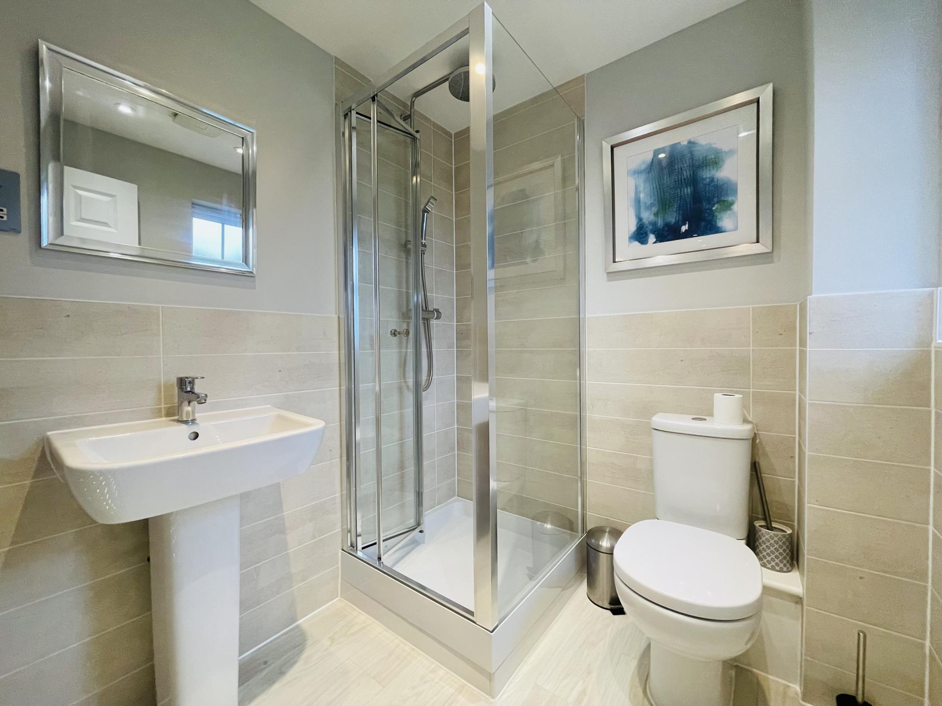 Upstairs, the property boasts a generous master bedroom with ensuite shower room, a further double bedroom, a versatile single bedroom/study, and a contemporary family bathroom with shower over bath.
