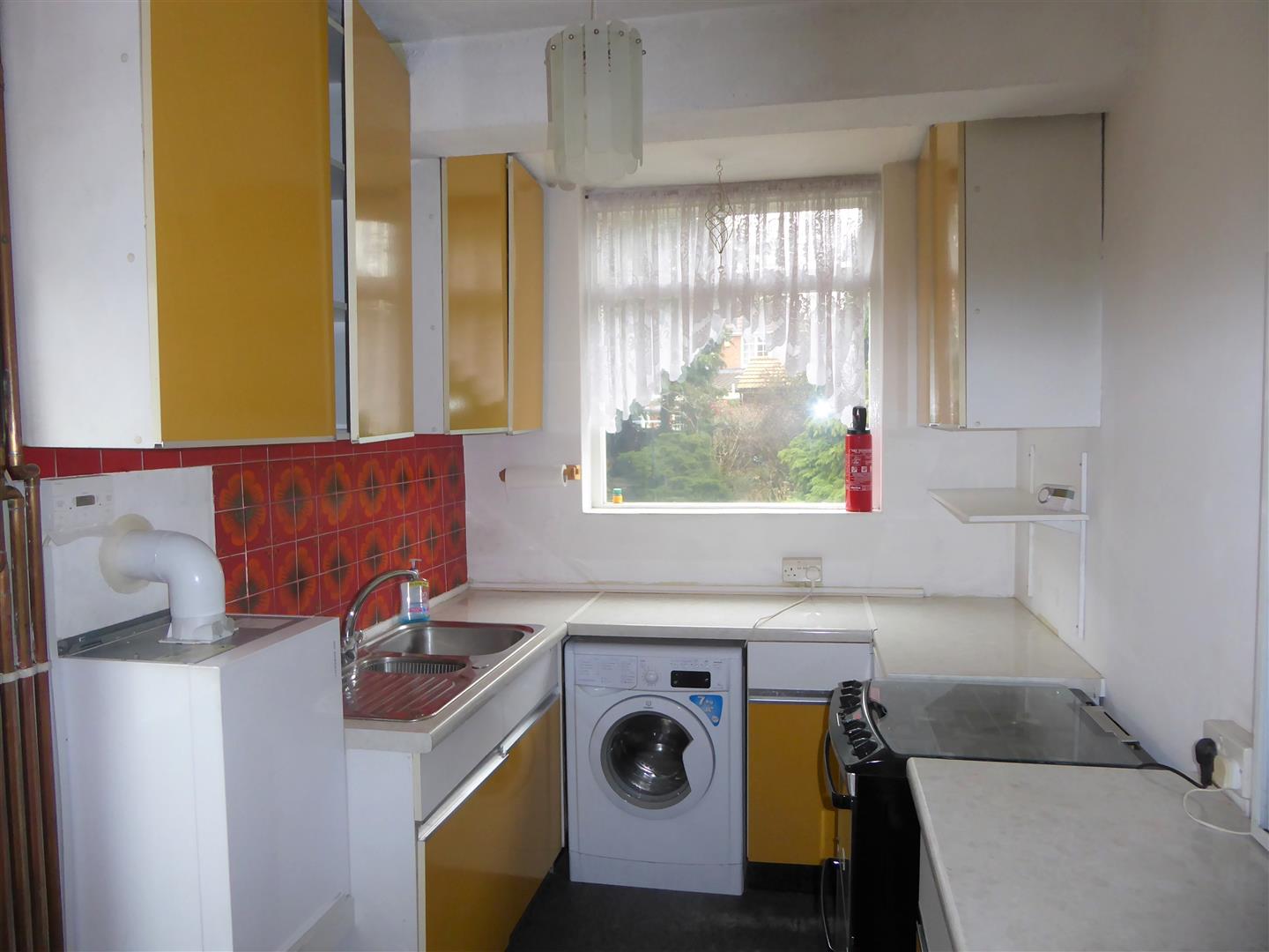 Kitchen - Range of wall and floor mounted units, 11/2 bowl sink with mixer taps, part tiled wall, space for cooker, space and plumbing for washing machine, space for fridge/freezer, boiler with timer, rear aspect double glazed window, door to garden.