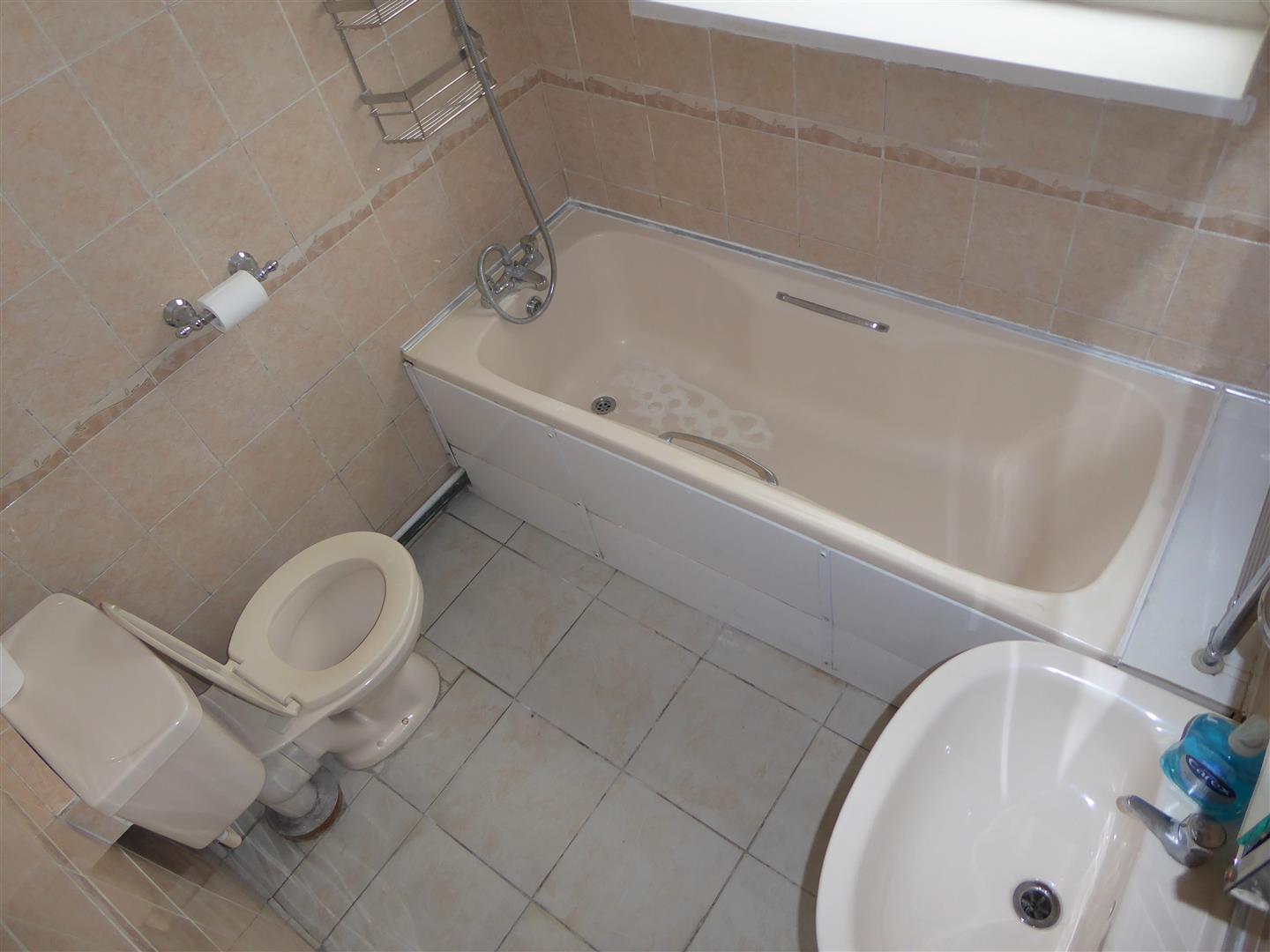 Bathroom - Coloured suite comprising enclosed bath with miser tap and shower attachment, pedestal wash hand basin, low level w.c, tiled walls and flooring, rear aspect double glazed window.