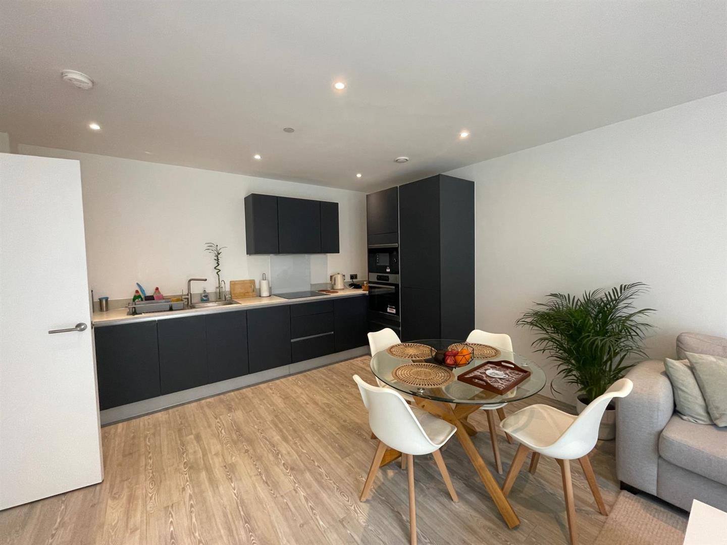 - Open plan lounge/kitchen with balcony and bathroom