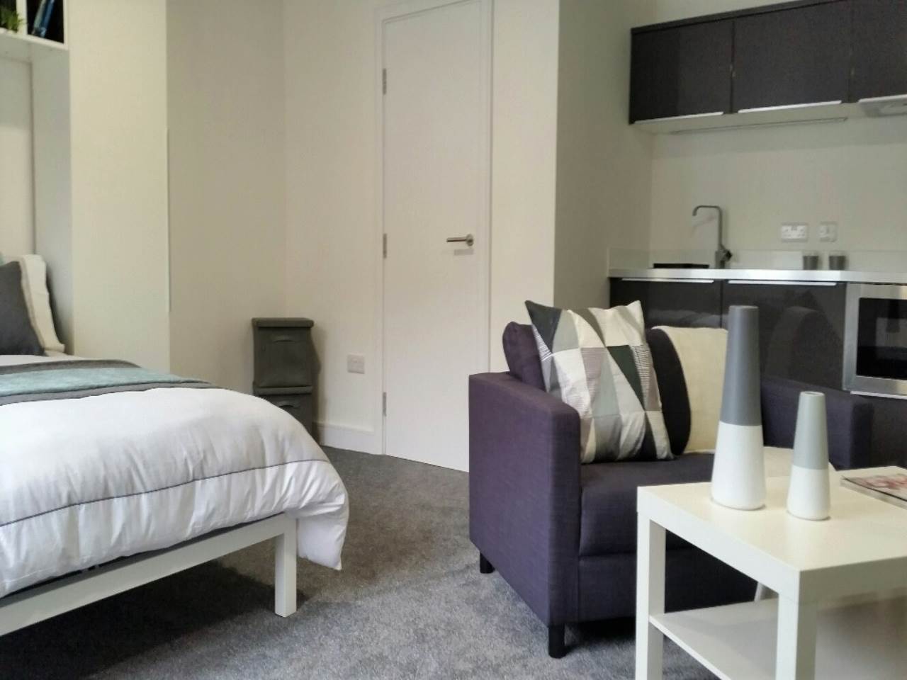 Luxury 1 bedroom en-suite studio apartment in a beautiful detached building in Huddersfield. The building comprises of only 6 purpose built studio apartments in a quiet, sought after location just 15 minutes walk from the Huddersfield University campus.