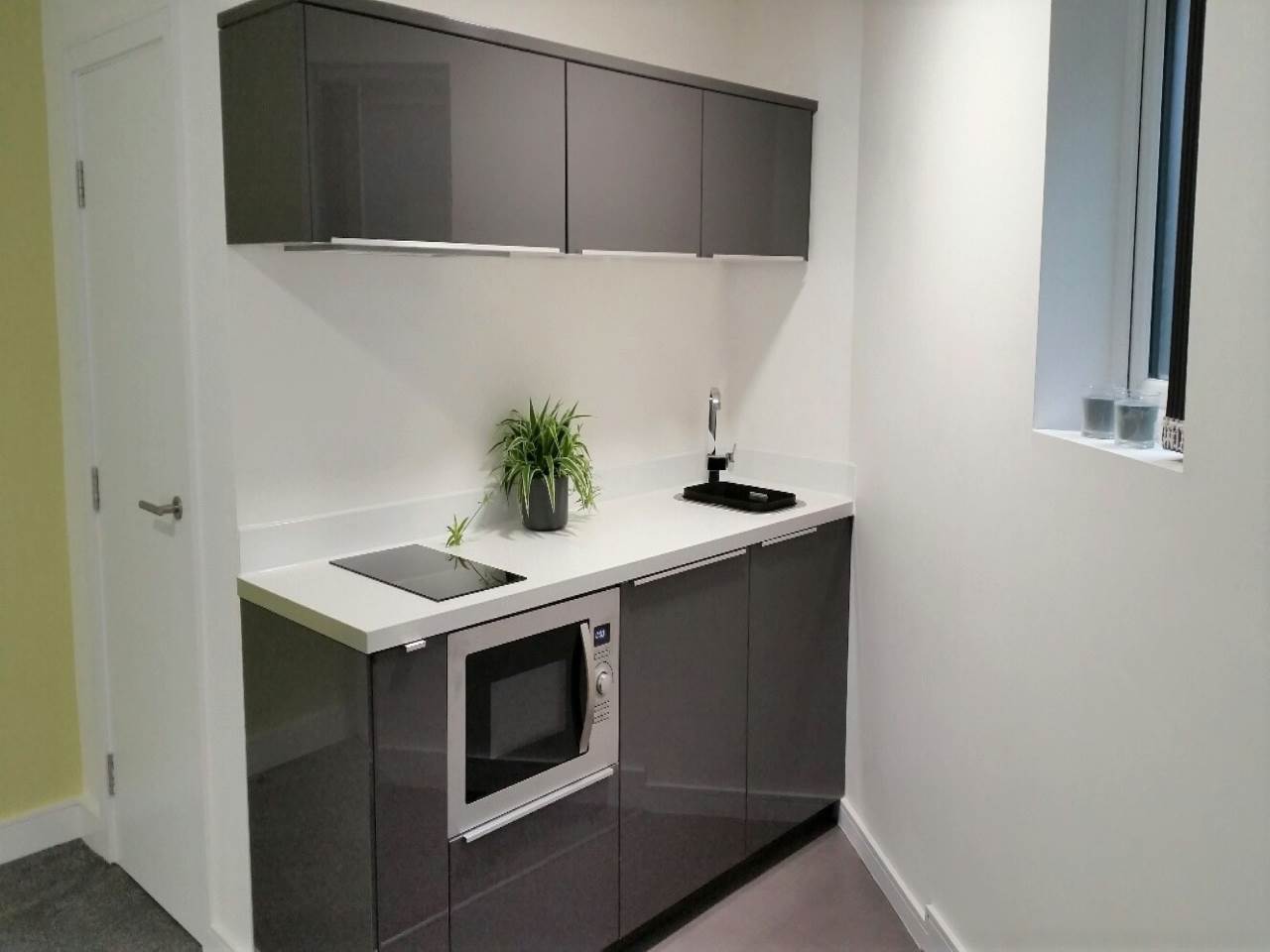 Stylish private kitchen area fitted with an integrated oven, hob, microwave and extractor fan.