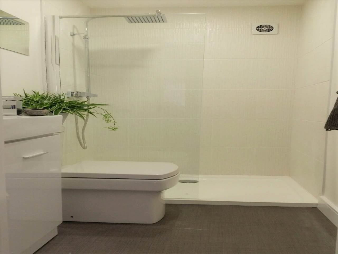The en-suite bathroom includes stylish fittings including a power shower with large rainfall shower head, WC and wash basin.