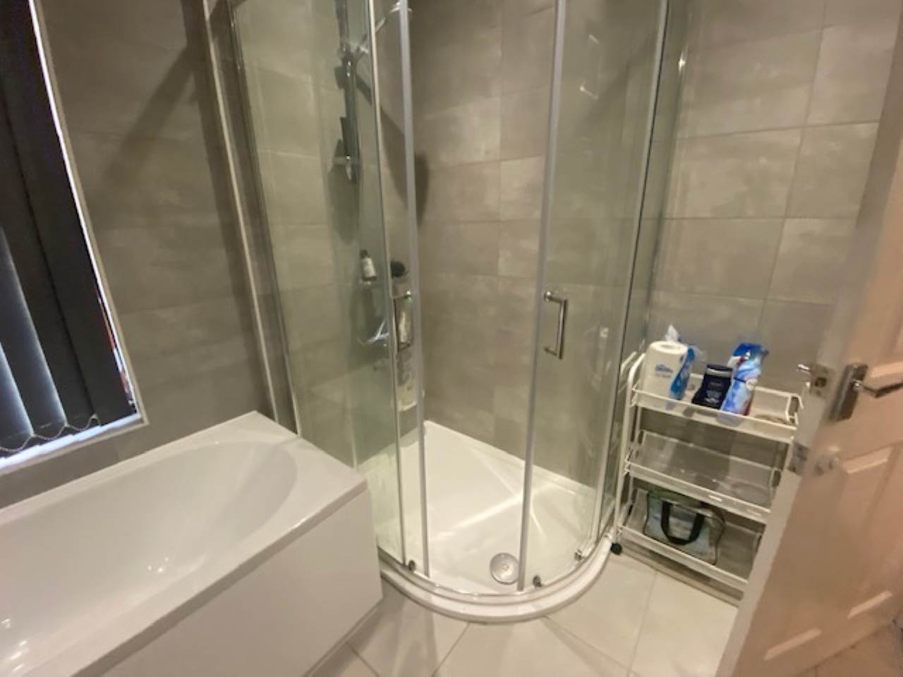 Super-sized bathroom complete with a shower, bath, wash basin, wc and includes ample of storage space for towels, toiletries etc.