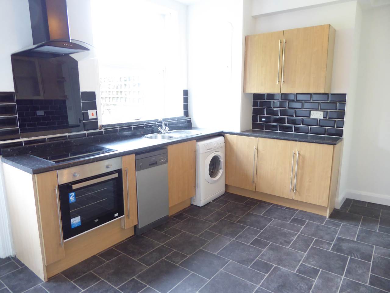 Fully tiled kitchen fitted with plenty of storage and all the essential appliances you will need including a fridge/freezer, washer, integrated oven, hob, extractor fan and even a dishwasher!