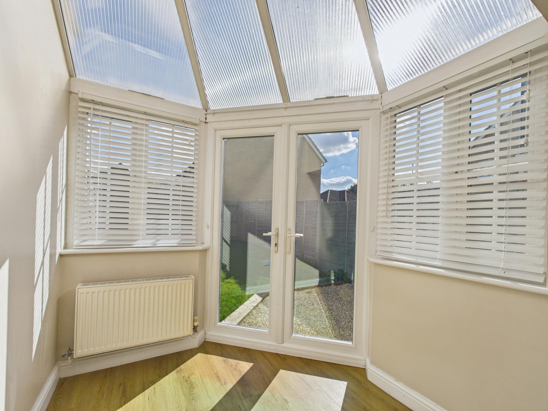 - Living room with vaulted ceiling conservatory.