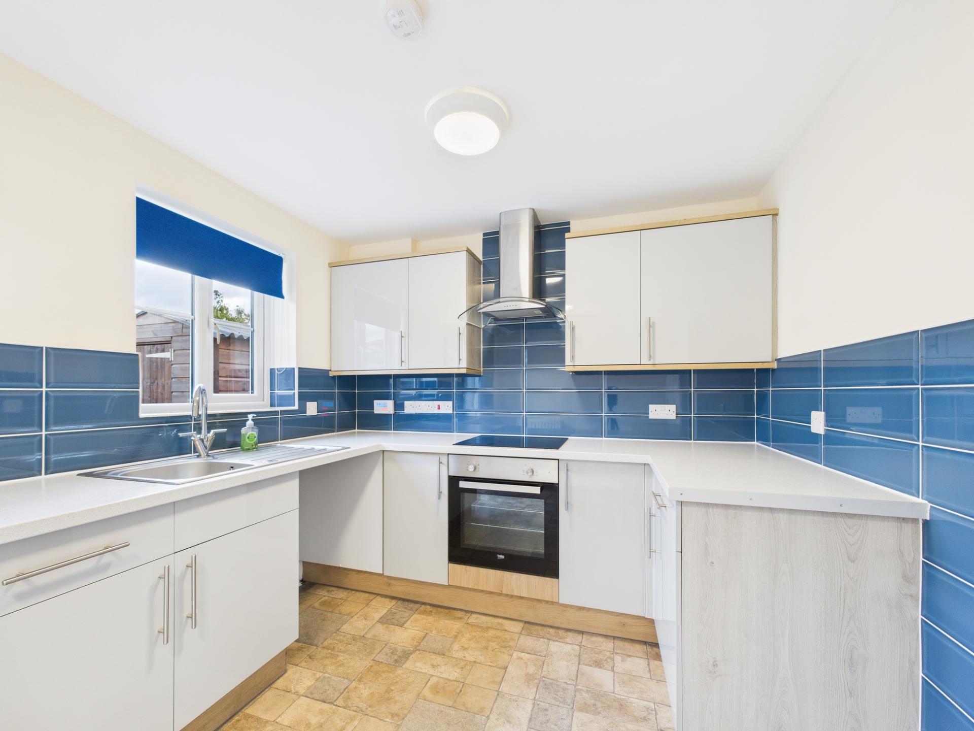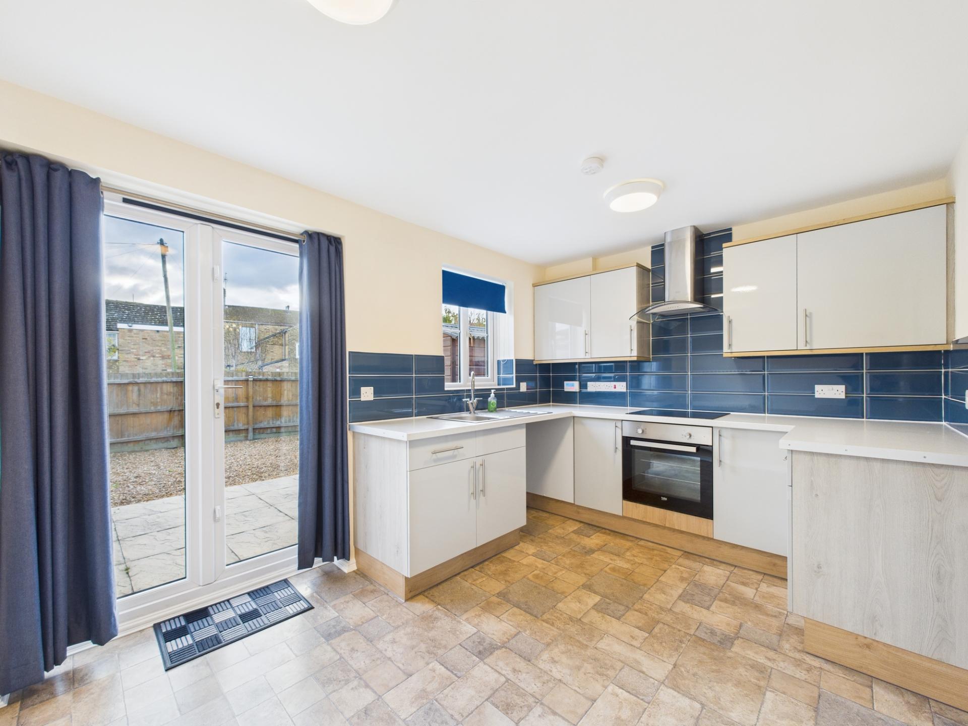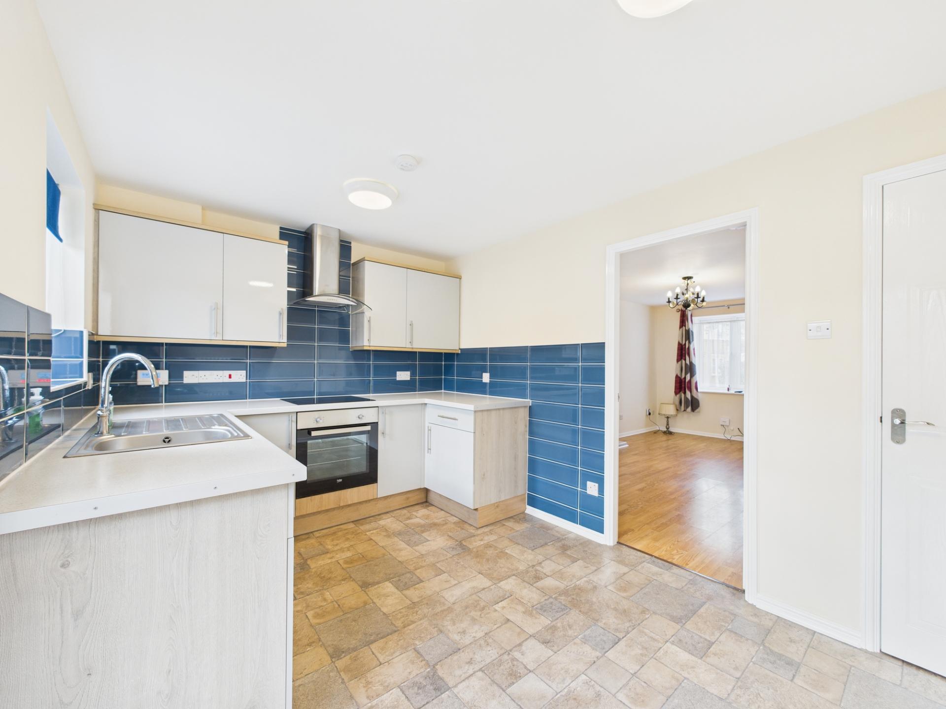 Fitted with a range of wall mounted and base units with work surface over. Single electric oven. Four-ring electric hob with cooker extractor over. Sink and drainer unit. Space and plumbing for washing machine. Space for fridge/freezer. Storage cupboard. UPVC window to rear elevation. UPVC patio doors leading into rear garden.