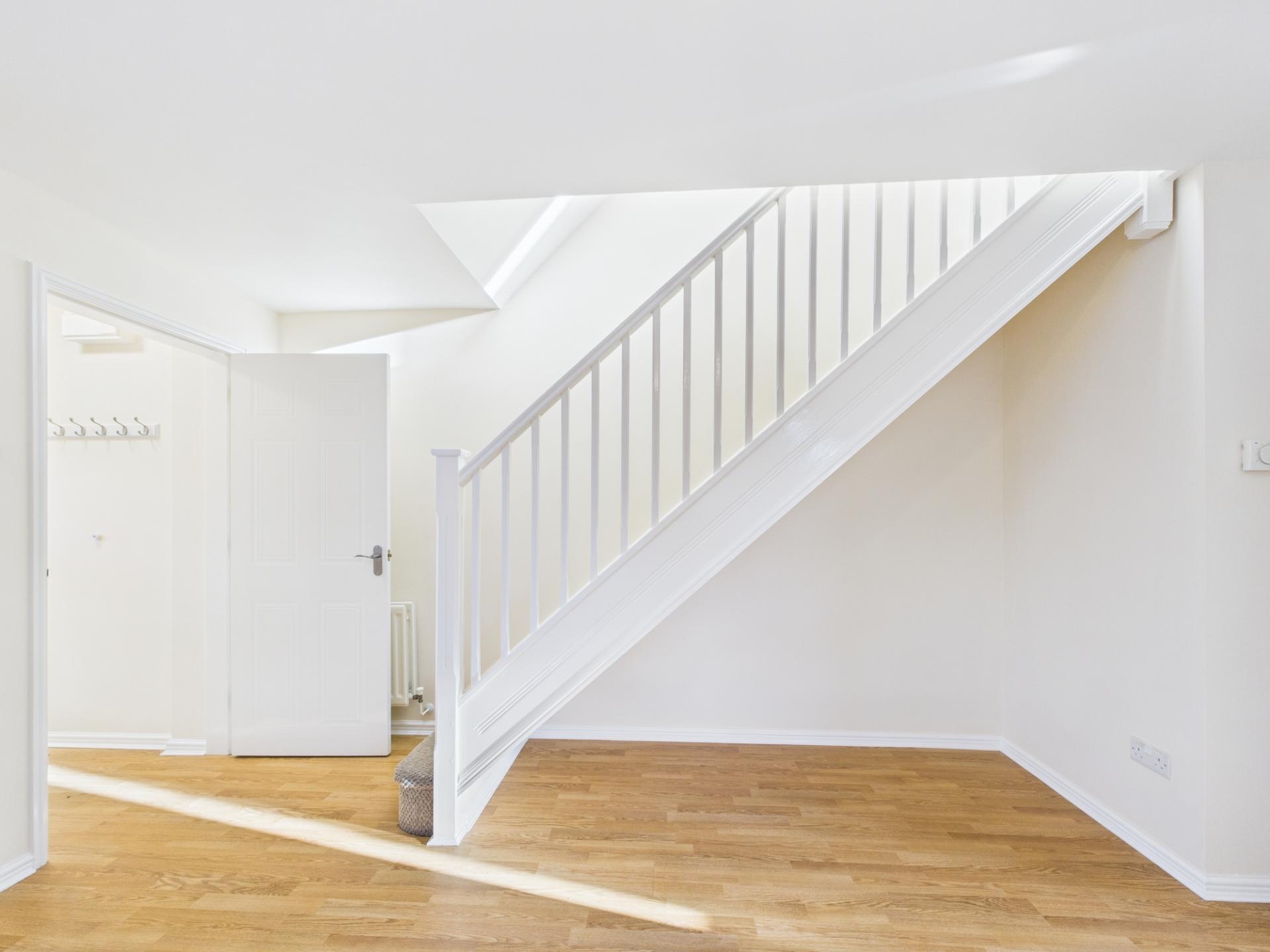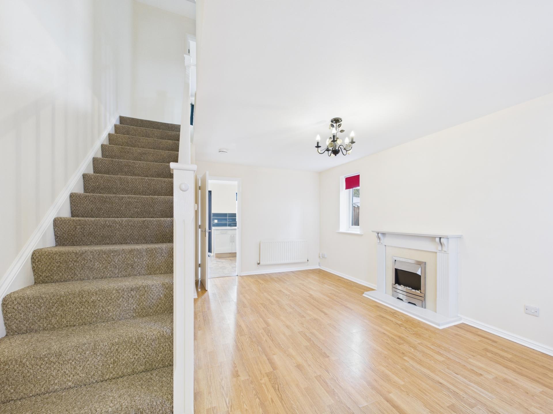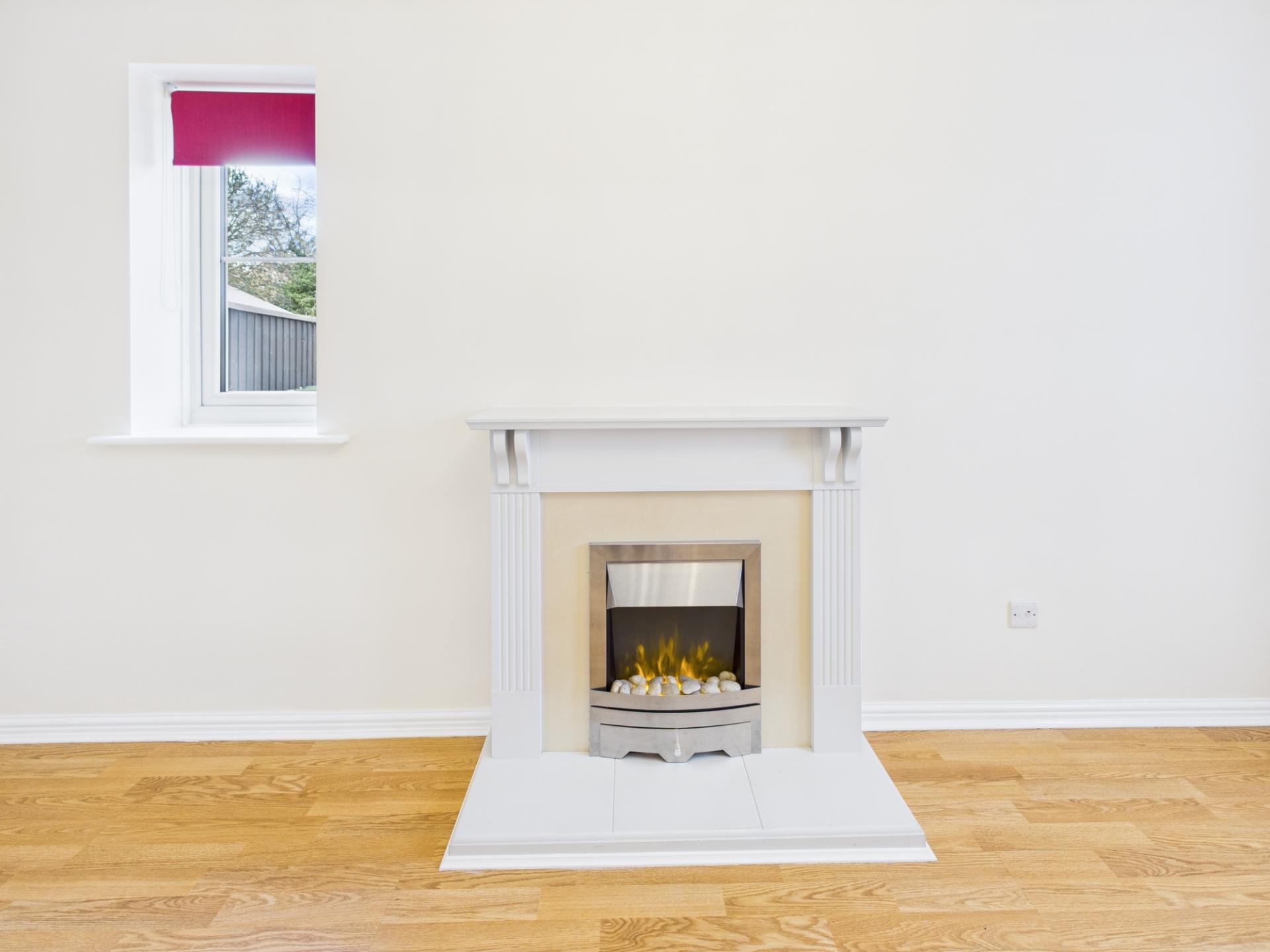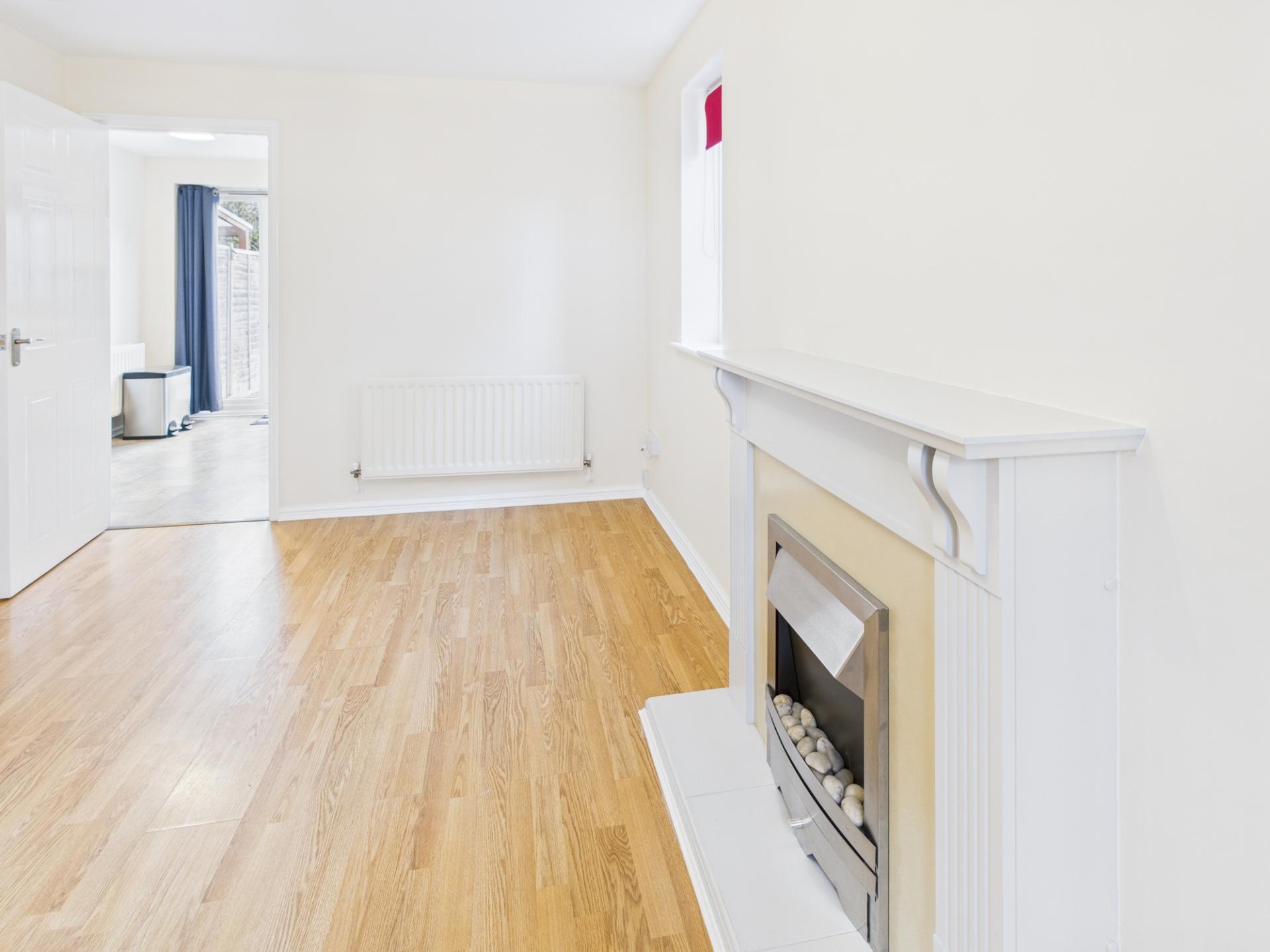 UPVC windows to front and side elevations. Feature fireplace. Stairs to first floor. Wood effect laminate flooring.
