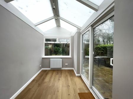 The ground floor features an impressive 23 ft sitting/dining room, creating a bright and spacious open-plan area ideal for both everyday living and entertaining. To the rear is a newly fitted kitchen with ample cupboard and worktop space, complete with a washer dryer, dishwasher and freestanding induction cooker. A conservatory provides an additional reception space, well suited as a dining area, garden room or home office.