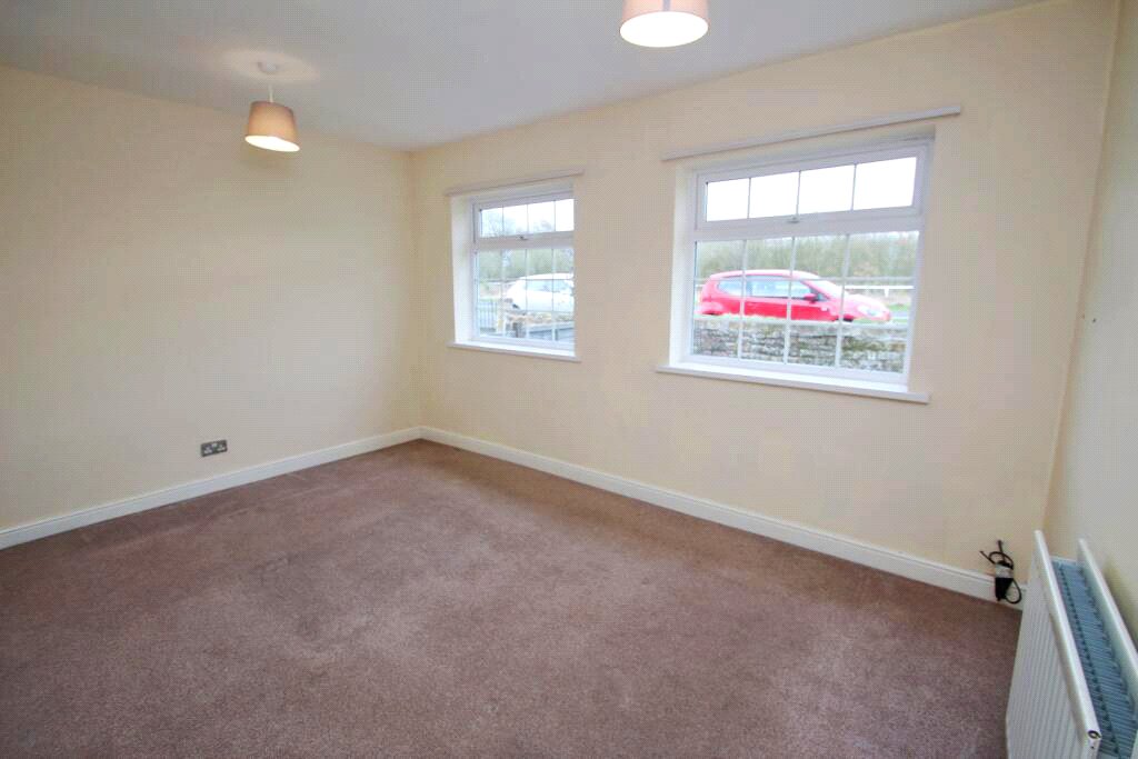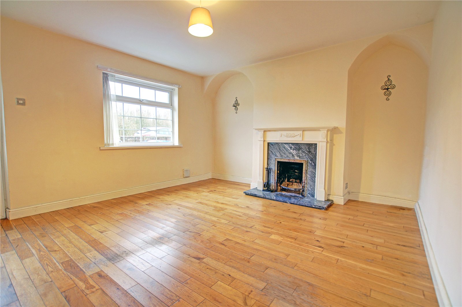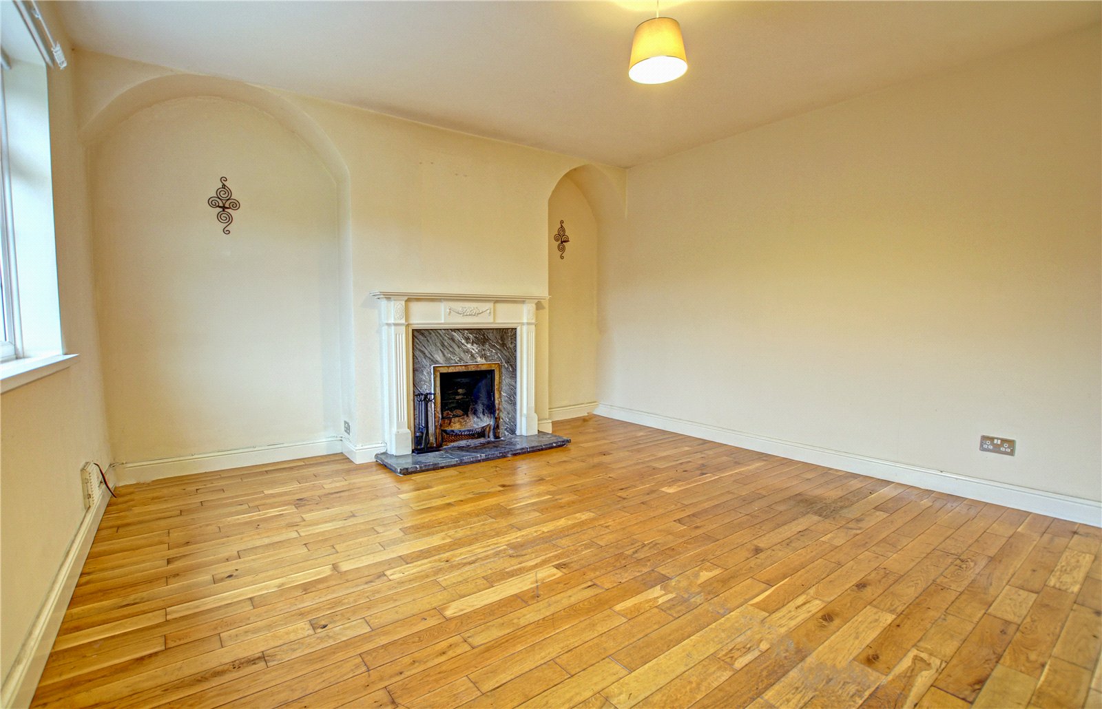 Wall mounted radiator, fireplace and surround, double glazed window, PVC door and wood flooring.