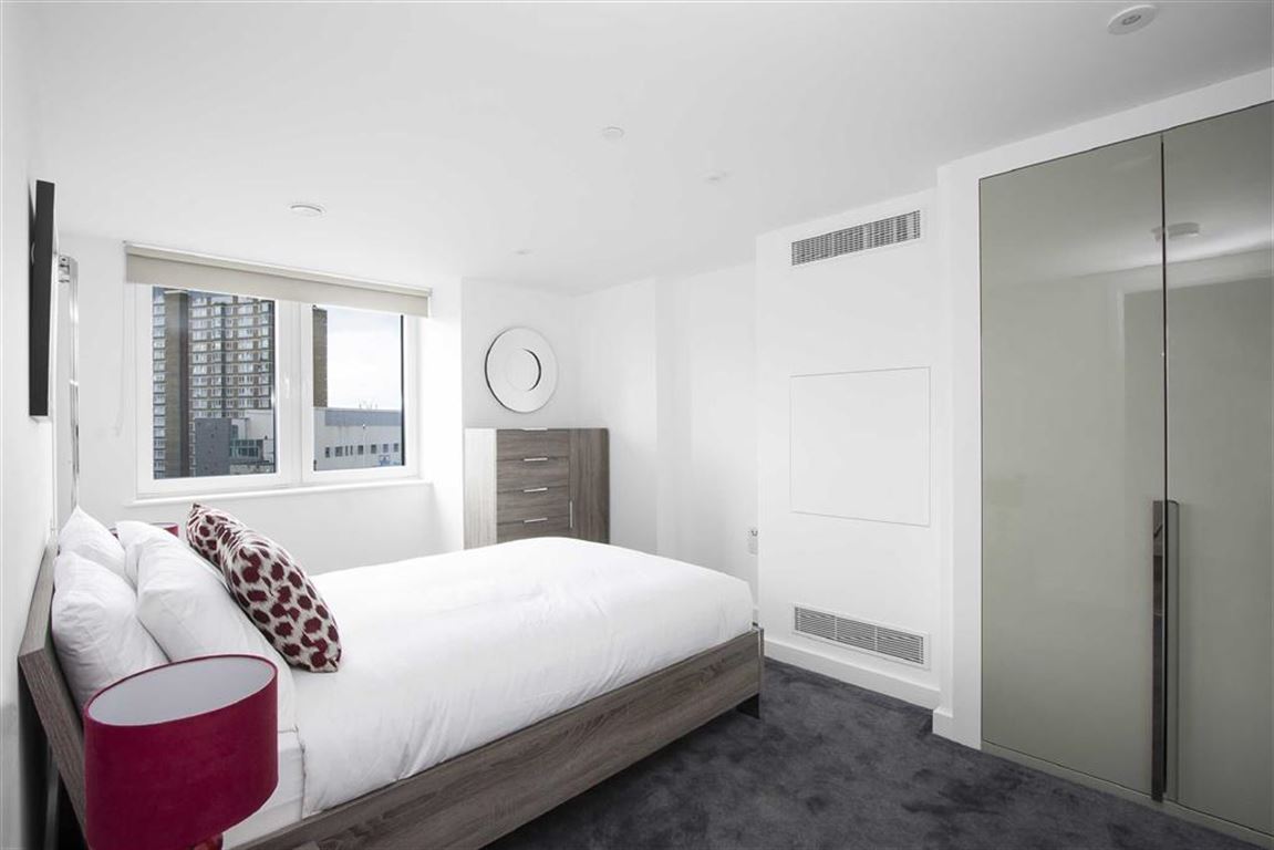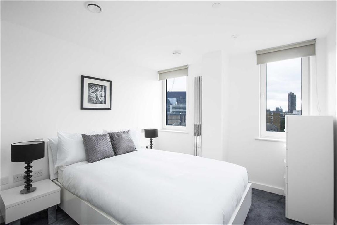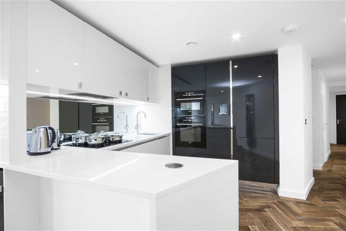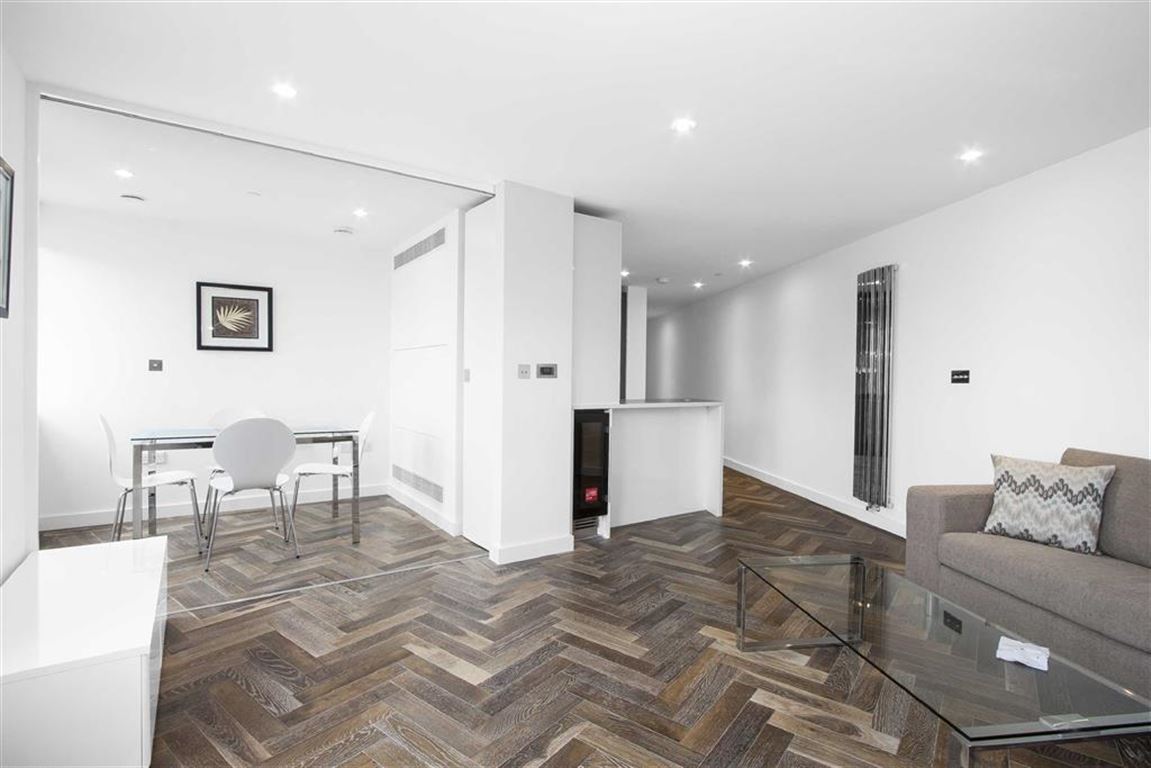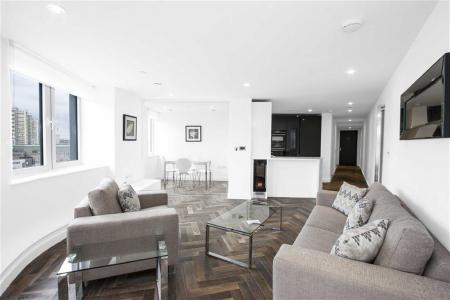The 8th floor apartment is finished to the highest standard with great attention to detail. Comprising a contemporary family bathroom, two double bedrooms ( master with EN SUITE ) and an open plan living room/kitchen with large windows offering panoramic views of London.