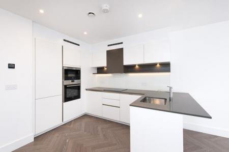 Amazing apartment located on the fourth floor of this areas premier development. The apartment has been built to the highest specifications boasting an open plan fully integrated kitchen with white matt handle less units and all Siemens appliance. The living area leads out to a spacious decked covered private balcony. The property benefits from two spacious double bedrooms with Juliette balconies, the master with built in wardrobes with sliding mirror doors and an en-suite bathroom. The property also has a super luxury main bathroom suite with mirrored cabinet soft closing doors, glass shelves halo lighting and chrome heated towel rails. The apartment boasts natural white matt emulsion throughout, hardwood flooring in living areas and luxury carpet to the bedrooms, heated floors, video entry system. The development boasts a 24-hour concierge, an attractive courtyard, the development has the added benefit of a glass-fronted entrance lobby, fully equipped gym (discount available) and communal podium gardens with views over Market Road Gardens. As the ground level will be high-end retail this would add an extra plethora of convenient amenities.