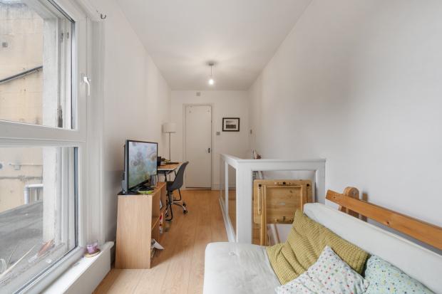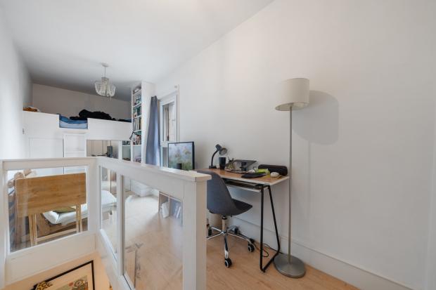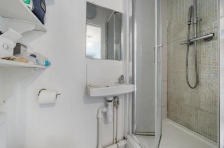 This lovely home offers smart New York loft style living boasting a separate kitchen on the 1st floor level and then a spacious studio area on the 2nd floor level with built in raised bed, lots of storage underneath, space for a two seat sofa and desk and a modern shower room. The studio boasts wood floors throughout, double glazing, under stair storage and comes furnished or unfurnished.
