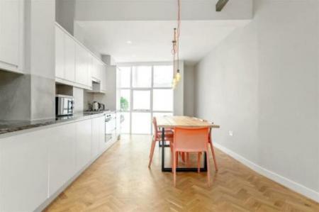 This impressive home is discreet on the outside but once inside you will be impressed by the luxurious unique space and layout with a mix of high ceilings, exposed beams and parquet flooring. The ground floor level consists of a lovely living room space with flat screen TV and L Shaped sofa, a glass atrium lets in light and frames a green wall to create a calm vibe. Beyond the atrium leads through to the stunning Comprex kitchen with all white units and marble worktops fully fitted with Miele gas hob and oven, full size dishwasher and a large dinning space ideally for entertaining. On the lower ground level you have a double bedroom which enjoys an ensuite WC, a unique internal courtyard with outdoor rainfall shower head and extra storage space, a second double bedroom and luxury bathroom.