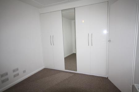 Carpet, built-in wardrobe, two double glazed windows to front aspect.