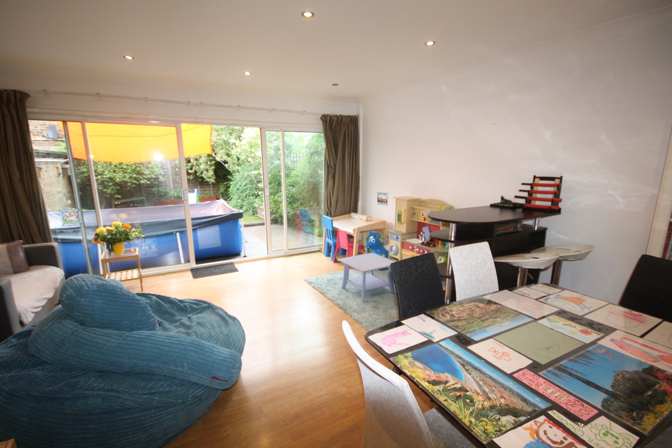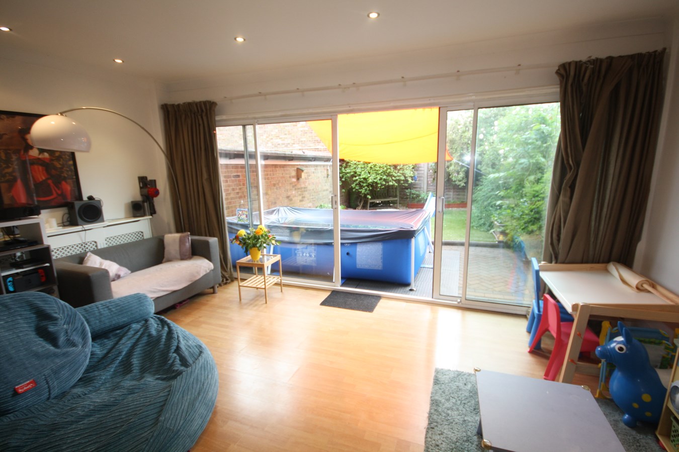The hallway leads to a bright spacious interior . Separate family kitchen with integrated appliances , living room with wood flooring and patio doors leading to rear enclosed garden and patio area.