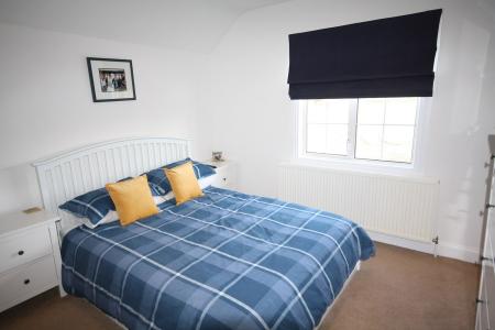 To the first floor there is a good-sized front aspect master bedroom with views over open countryside, second double bedroom with fitted cupboards and third double bedroom.