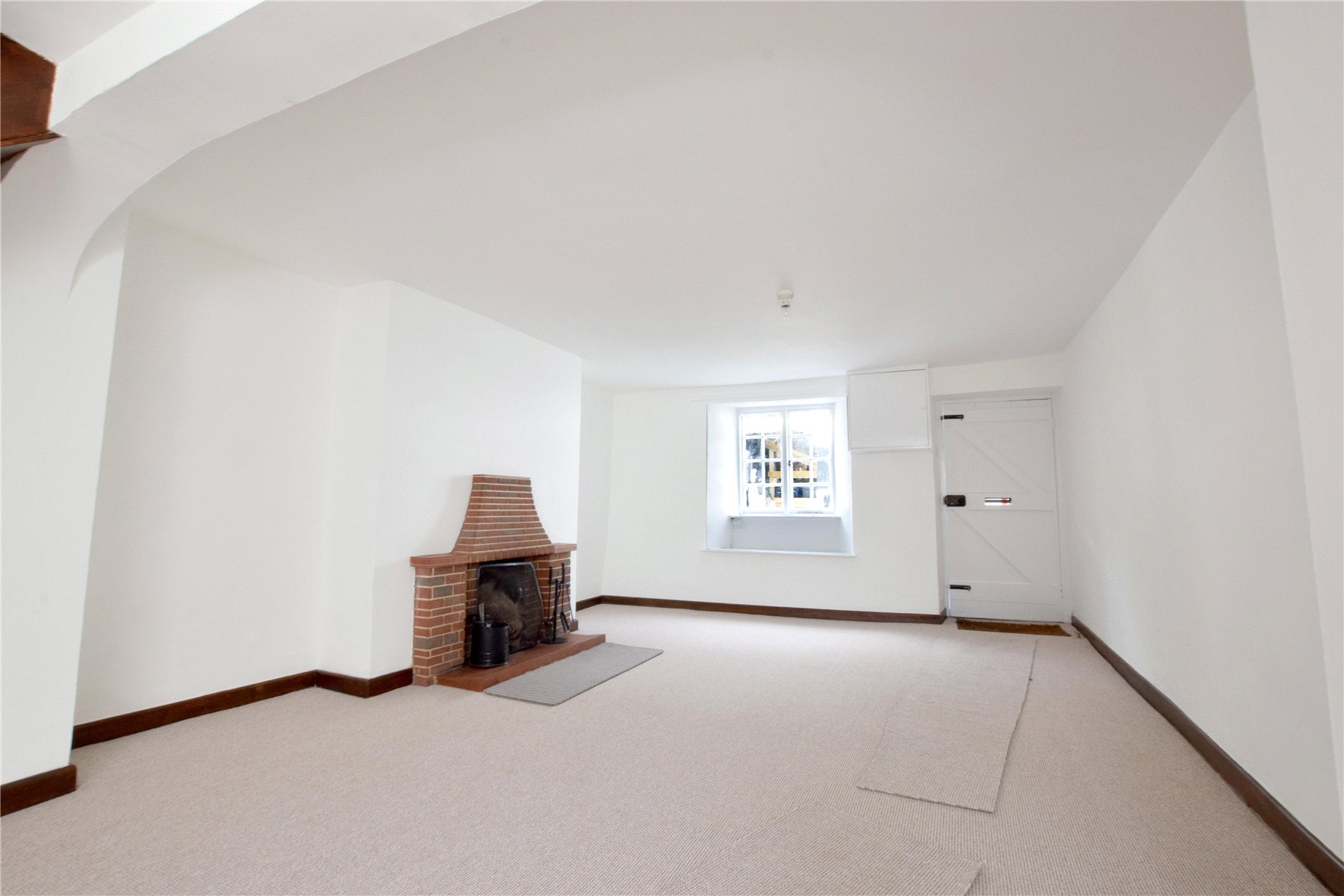 LIVING / DINING AREA 12'8" x 23'7" (3.86m x 7.2m). Spacious dual-aspect living and dining area featuring a working woodburner set on a slate hearth. Natural light floods the room through windows to both the front and rear aspects. TV point and new night storage heater. Door to -