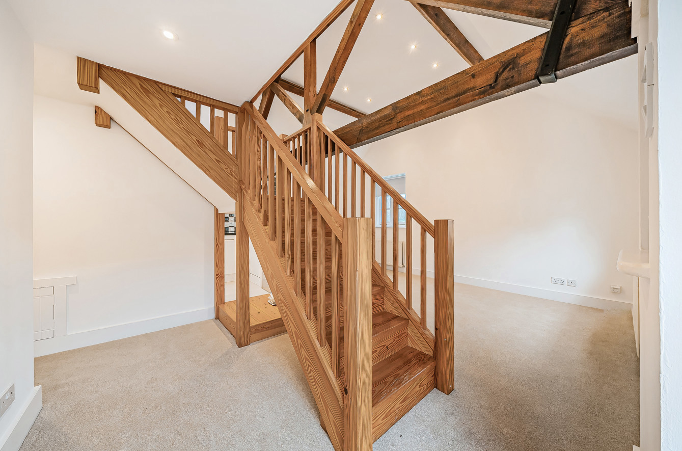 Comprising open plan living room & kitchen. Master bedroom with ensuite bathroom, shower room & mezzanine double bedroom/study. Unfurnished. Available NOW