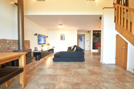 Finished to a high standard throughout, the property offers spacious and versatile accommodation that combines modern design with rustic charm. The impressive kitchen and dining area features a large central island and ample storage, opening seamlessly into a generous open-plan living space with bi-folding doors leading directly onto the garden - perfect for both entertaining and family living.