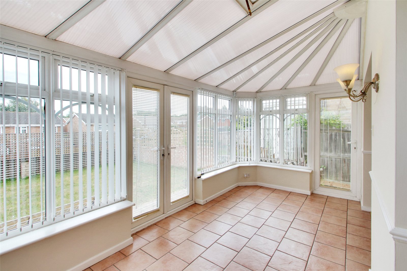 Conservatory 15'7" x 7'2" (4.75m x 2.18m). Double glazed French doors to rear. Double glazed door to side. Double glazed windows to rear and side. Small double glazed frosted window to side. Tiled flooring. Dado rail.